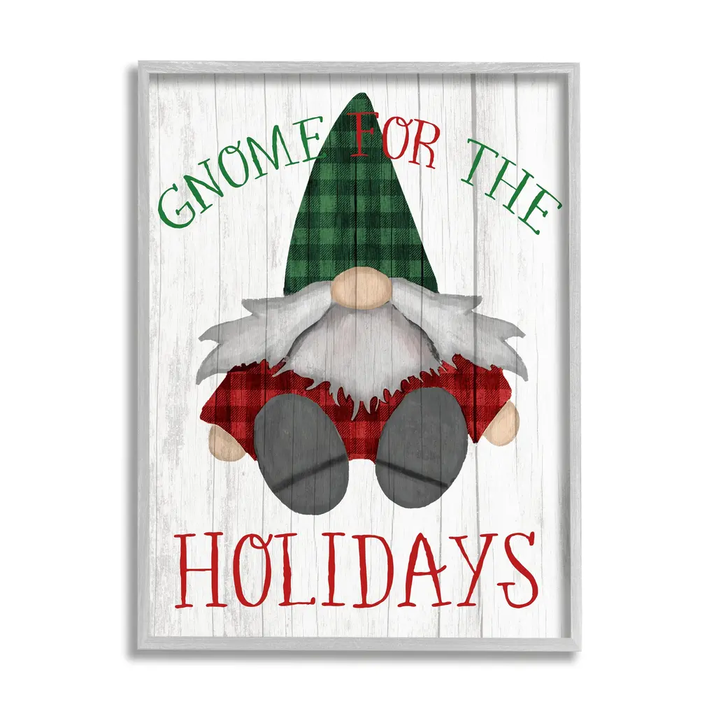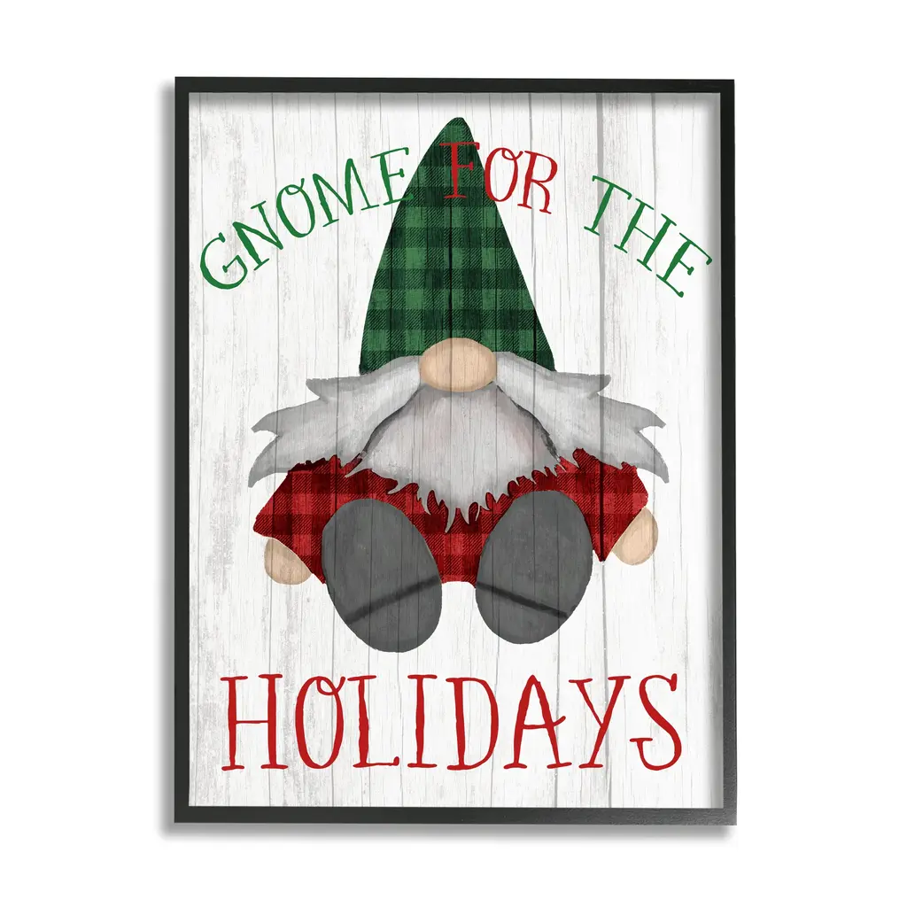 Our wall plaques start as high-quality lithograph prints mounted on durable 0.5-inch thick MDF wood. Each piece is hand finished and comes with a fresh layer of white foil on the sides to give it a crisp, clean look. Plaques arrive ready to hang without installation and come with removable plastic corners to keep them from damage in transit. Stupell Wall Art is made in the USA.Features: Dimensions: 10 x 0.5 x 15 InchesWall Plaque Sizes Include Standard: 10 x 0.5 x 15 Oversized: 13 x 0.5 x 19Wall Art is Ready to Hang with Hardware Free Hanging. No installation required. For Easy Set Up Lean or Layer Artwork on Shelf or Against Wall.All of our wall plaques start off as high quality lithograph prints that are then mounted on durable 0.5 inch thick MDF wood. Each piece is hand finished and comes with a fresh layer of foil on the sides to give it a crisp clean look. Made In USA.Artwork Relates To: Winter, Snow, Elf, Festival, Christmas, Gnome, Holiday, Seasonal, I'll Be Gnome for ChristmasDesign by Paul Brent