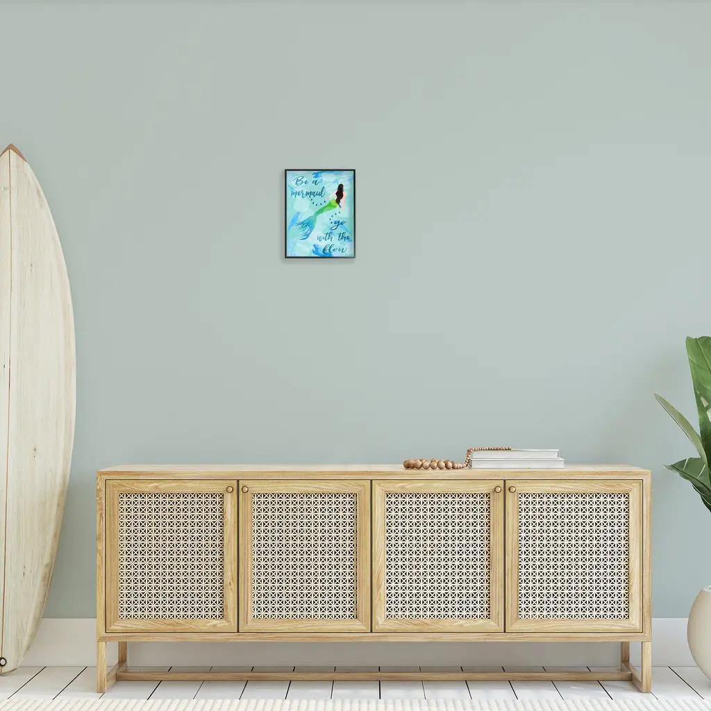 Add dimension to any room with our textured Framed Giclee Artwork. Our framed artwork is securely mounted into a 1.5-inch thick wood grain frame and ready to hang. Frames are available in three alluring styles: black, gray farmhouse and white. In addition, you should check out our oversized options if you want a statement piece. Stupell Wall Art is made in the USA.Features: Dimensions: 11 x 1.5 x 14 FramedFramed Giclee Products are available in the sizes 11"x14", 16"x20" or 24"x30". All Framed Giclee Products have a 1.5" Depth. Wall Art is Ready to Hang with Hardware Free Hanging. No installation required. For Easy Set Up Lean or Layer Artwork on Shelf or Against Wall.Our giclée prints are carefully mounted on a durable MDF backing, and then perfectly finished in a 1.5 inch thick woodgrain frame. Mounted frame colors include black, gray farmhouse and white. Made In USA.Artwork Relates To: Swimming, Water, Summer, Sea, Mermaid, Woman, Phrase, Inspirational, Be a Mermaid go with the FlowDesign by GraffiTee Studios