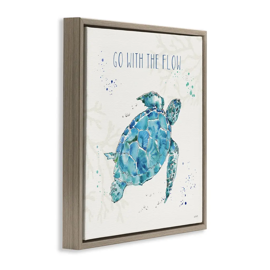 Stupell Go With The Flow Turtle Tortoise Framed Floater Canvas Wall Art Design By Anne Tavoletti - 25 X 25 - Brown