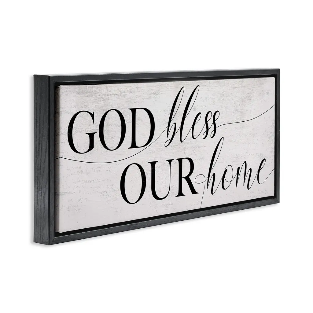 Stupell God Bless Our Home Phrase Framed Floater Canvas Wall Art Design By Daphne Polselli - 25 X 11 - Black