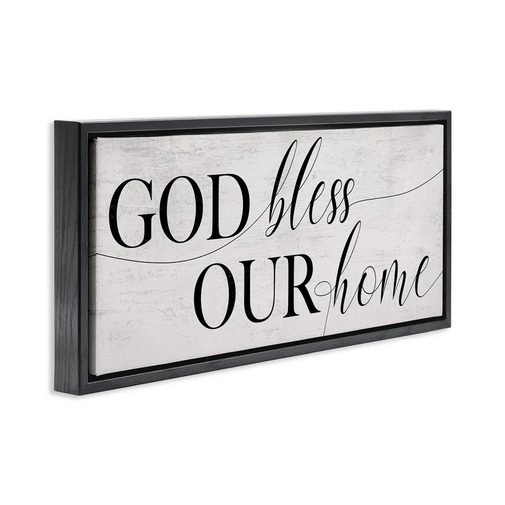 Stupell God Bless Our Home Phrase Framed Floater Canvas Wall Art Design By Daphne Polselli - 31 X 14 - Black