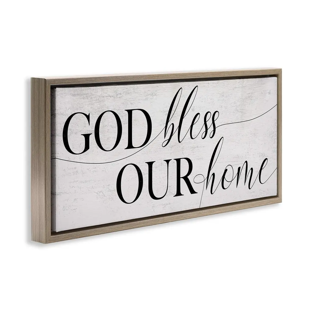 Stupell God Bless Our Home Phrase Framed Floater Canvas Wall Art Design By Daphne Polselli - 31 X 14 - Brown
