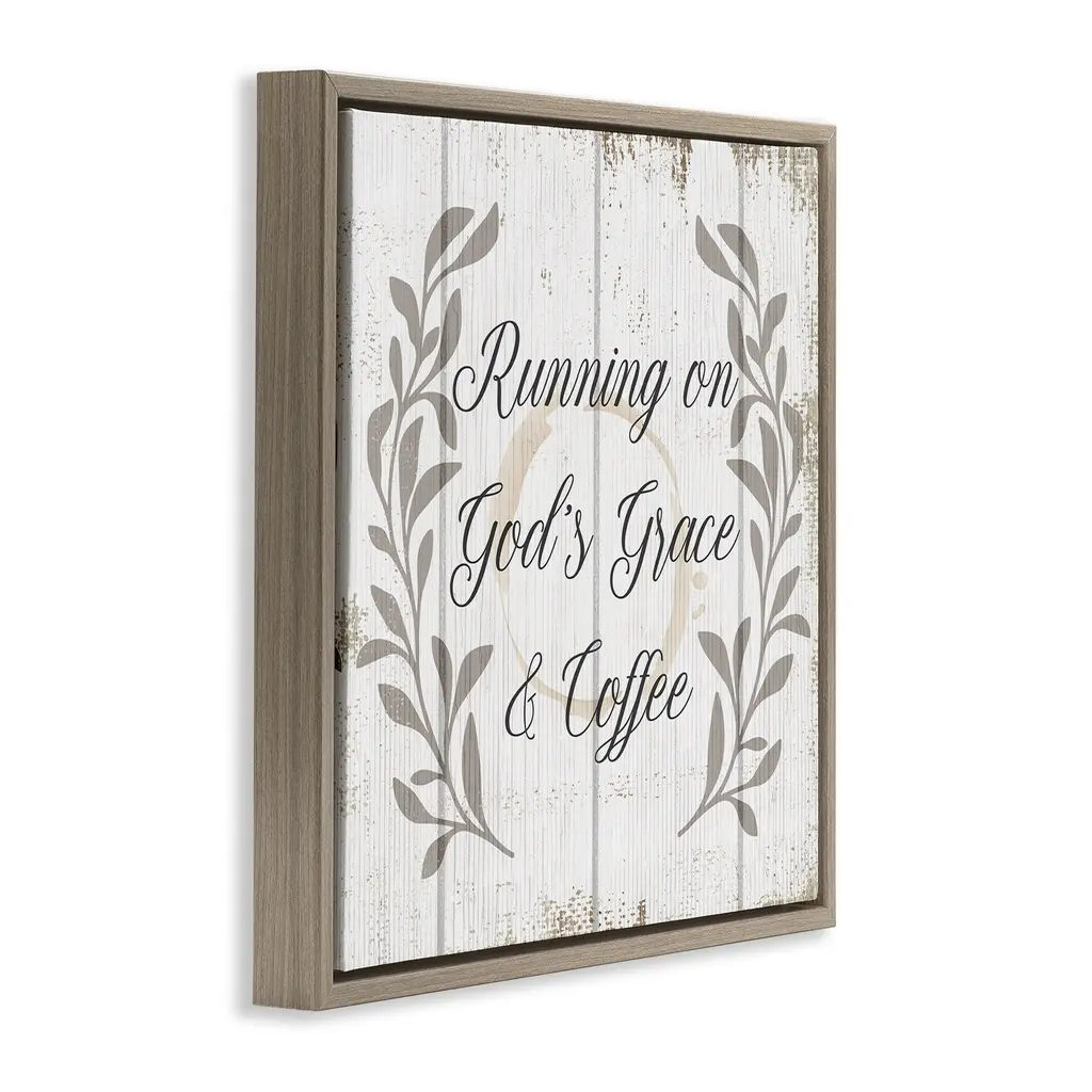Stupell God's Grace & Coffee Phrase Framed Floater Canvas Wall Art Design By Daphne Polselli - 25 X 25 - Brown