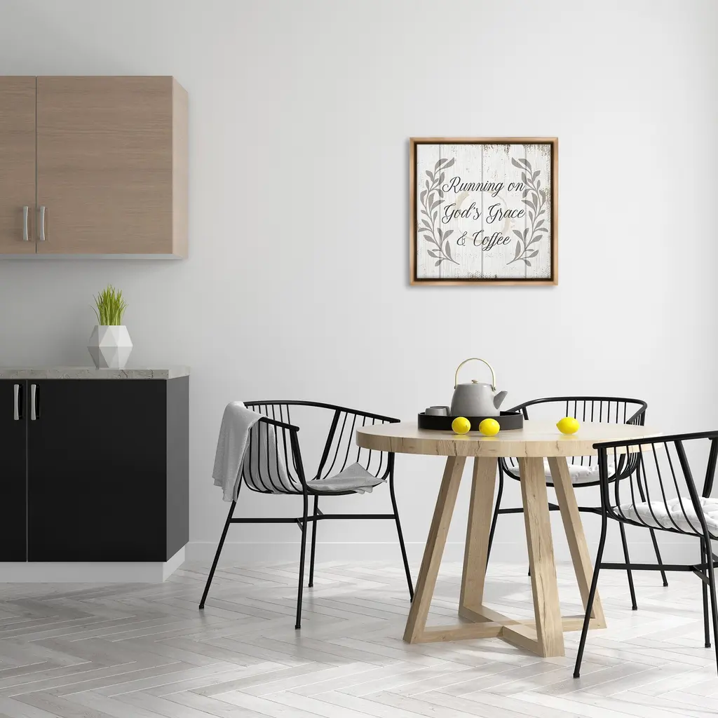 Elevate your home or office to the next level with Stupell Framed Floating Canvas Wall Art. Our premium hand-stretched canvas is mounted securely into a sturdy lightweight frame. The museum-style gap between the wrapped canvas and the box frame gives the illusion of floating artwork. Stupell Wall Art is made in the USA.Features: Dimensions: 18 x 1.7 x 18 Frame, 17 x 1.5 x 17 Canvas ArtFloating Frame Canvas Products are available in sizes 18"x18" and 25"x25". All Floating Frame Canvas Products have a 1.7" Depth.Wall Art is Ready to Hang with Hardware Free Hanging. No Installation required. For Easy Set Up Lean or Layer Artwork on Shelf or Against Wall. Artwork is Permently Fixed into the Frame.Our elevated 1.7" Thick Floating Frame is the perfect complement to our canvas style Wall Art. We use only the highest quality inks in house with industry leading printing solutions. Canvas is hand stretched over a durable wood foundation and then mounted securly into a Modern Box Frame. Made in the USA.Artwork Relates To: Phrase, Spiritual, Kitchen, Coffee, Religious, Faith, Rustic, Wreath, Botanical, PlantDesign by Daphne Polselli