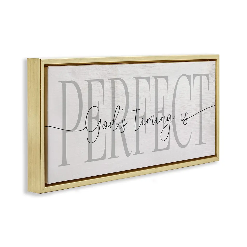 Stupell God's Timing Is Perfect Phrase Framed Floater Canvas Wall Art Design By Daphne Polselli - 31 X 14 - Gold