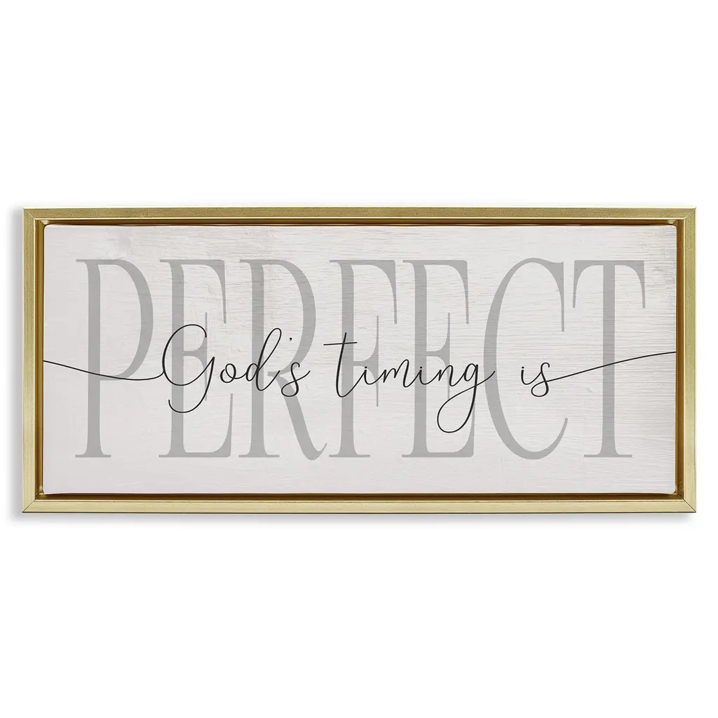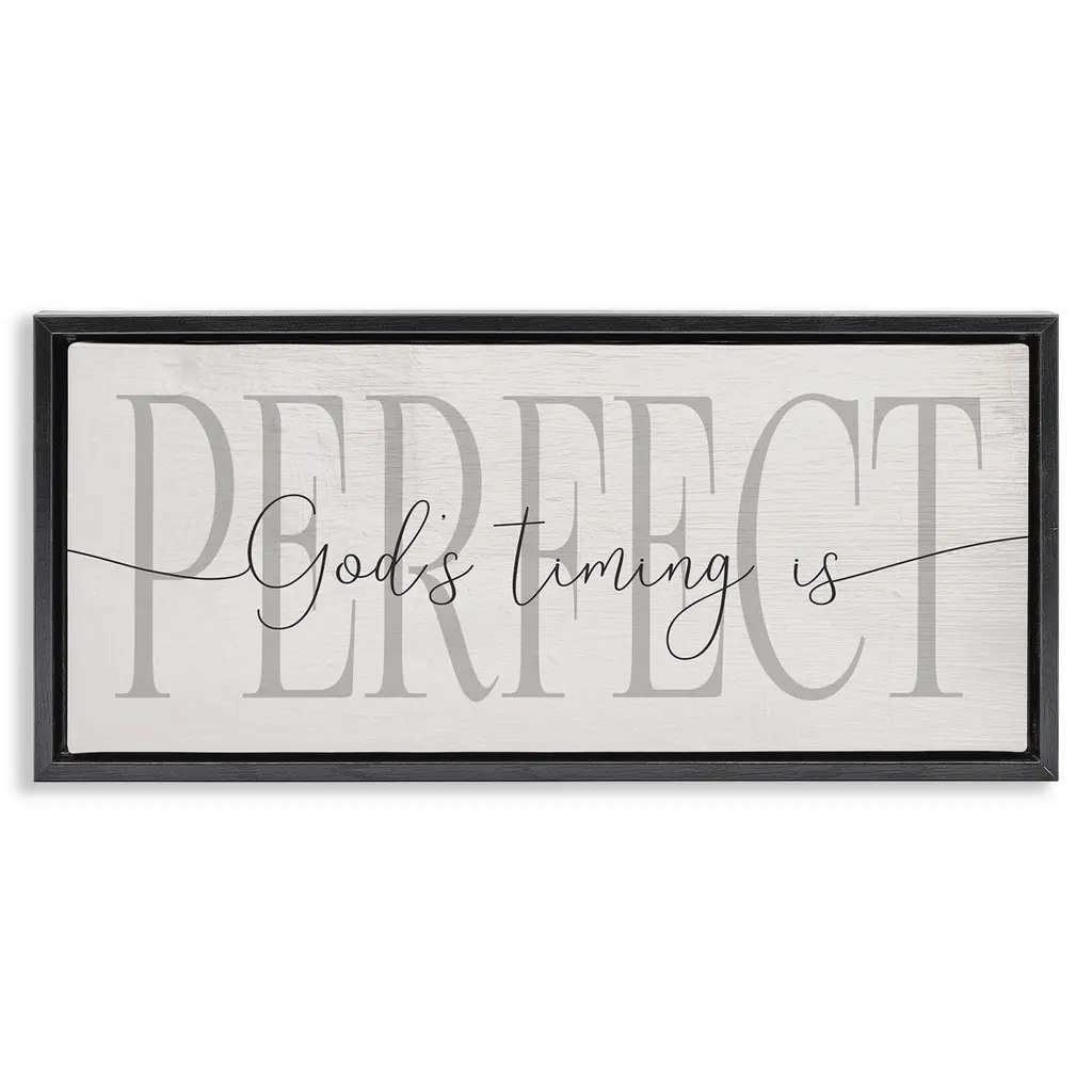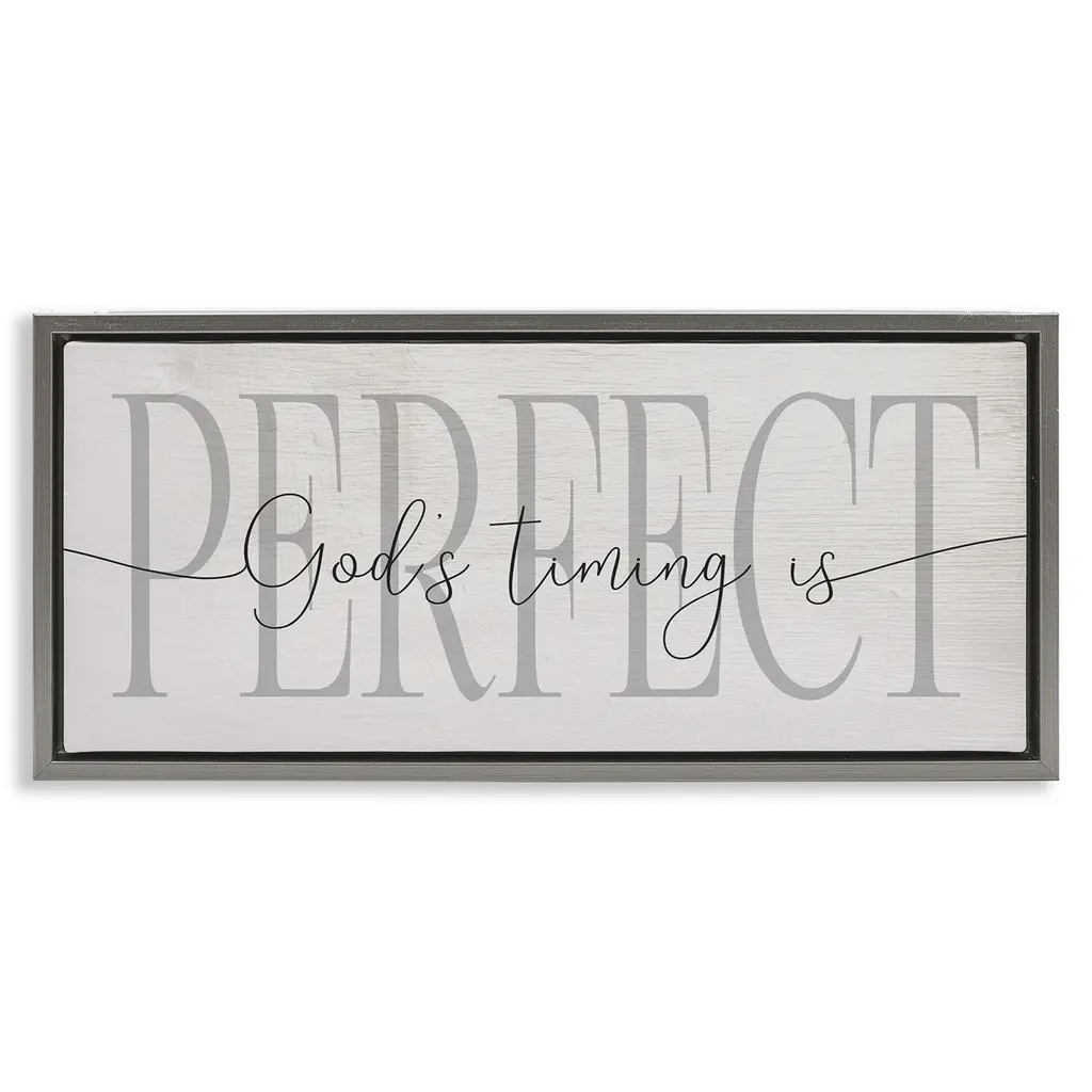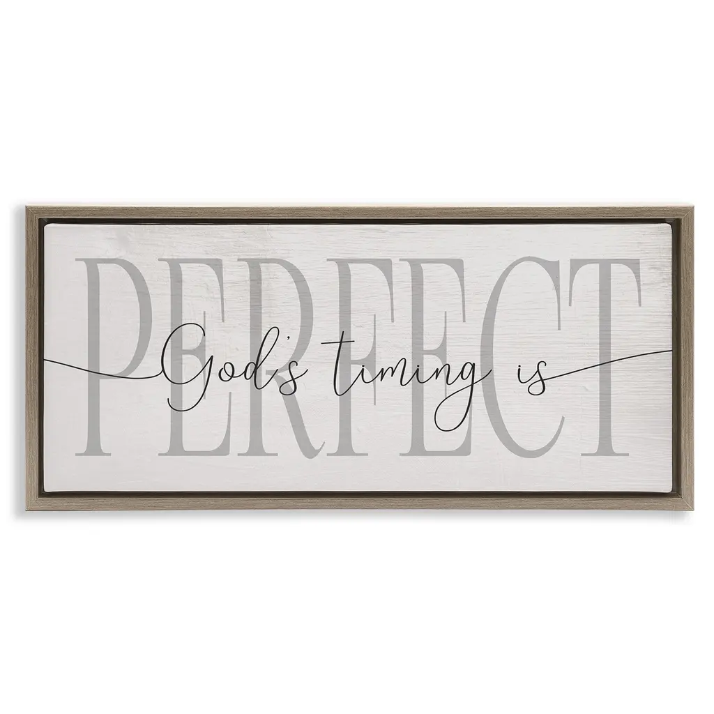 Stupell God's Timing Is Perfect Phrase Framed Floater Canvas Wall Art Design By Daphne Polselli - 31 X 14 - Grey
