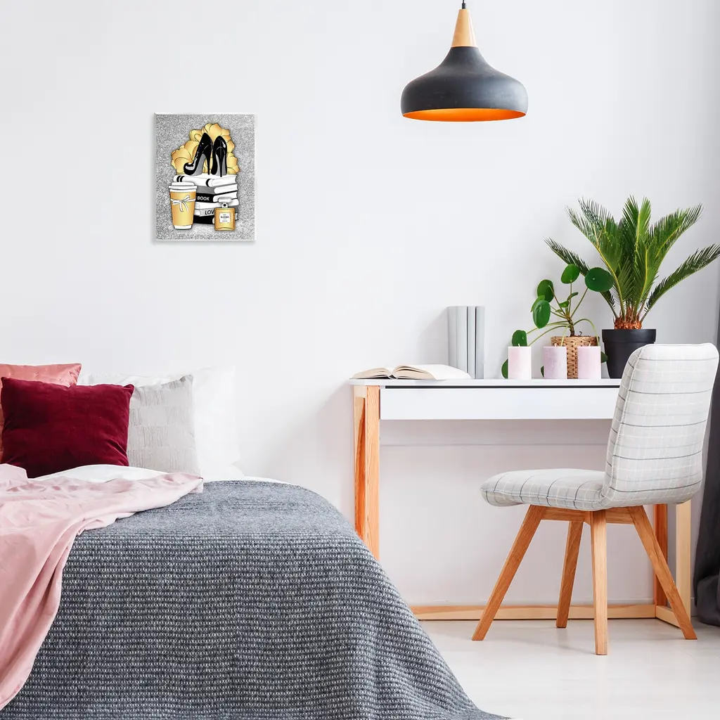 Our wall plaques start as high-quality lithograph prints mounted on durable 0.5-inch thick MDF wood. Each piece is hand finished and comes with a fresh layer of white foil on the sides to give it a crisp, clean look. Plaques arrive ready to hang without installation and come with removable plastic corners to keep them from damage in transit. Stupell Wall Art is made in the USA.Features: Dimensions: 11 x 0.5 x 14 InchesWall Art is Ready to Hang with Hardware Free Hanging. No installation required. For Easy Set Up Lean or Layer Artwork on Shelf or Against Wall.All of our wall plaques start off as high quality lithograph prints that are then mounted on durable 0.5 inch thick MDF wood. Each piece is hand finished and comes with a fresh layer of foil on the sides to give it a crisp clean look. Made In USA.Artwork Relates To: Glam, Fashion, Books, Heels, Shoes, Coffee, Flower, FloralDesign by Martina Pavlova