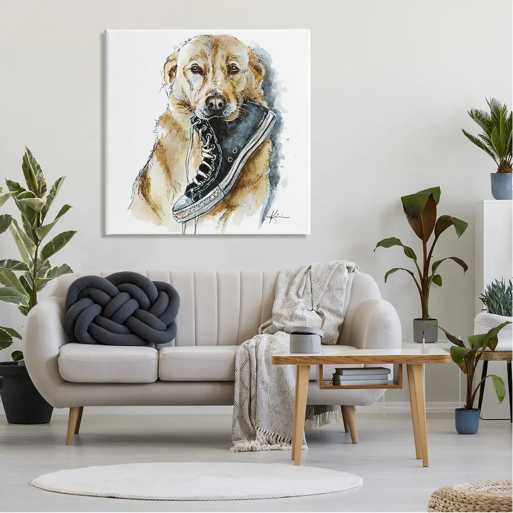Stupell Golden Retriever Biting Sneaker Canvas Wall Art By Lindsay Kivi Fine Art - 36 X 36