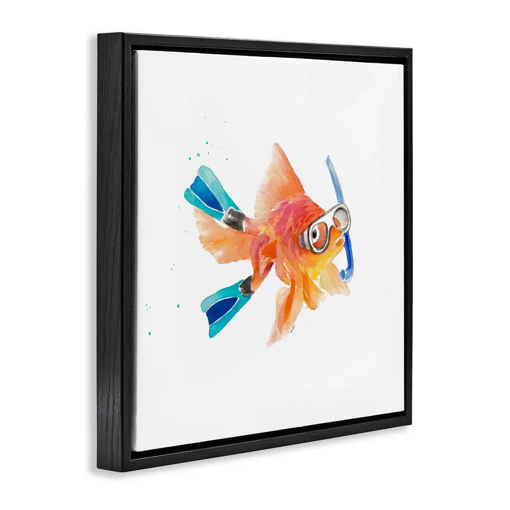 Stupell Goldfish Pet Snorkel Gear Framed Floater Canvas Wall Art Design By Lanie Loreth - 25 X 25 - Black