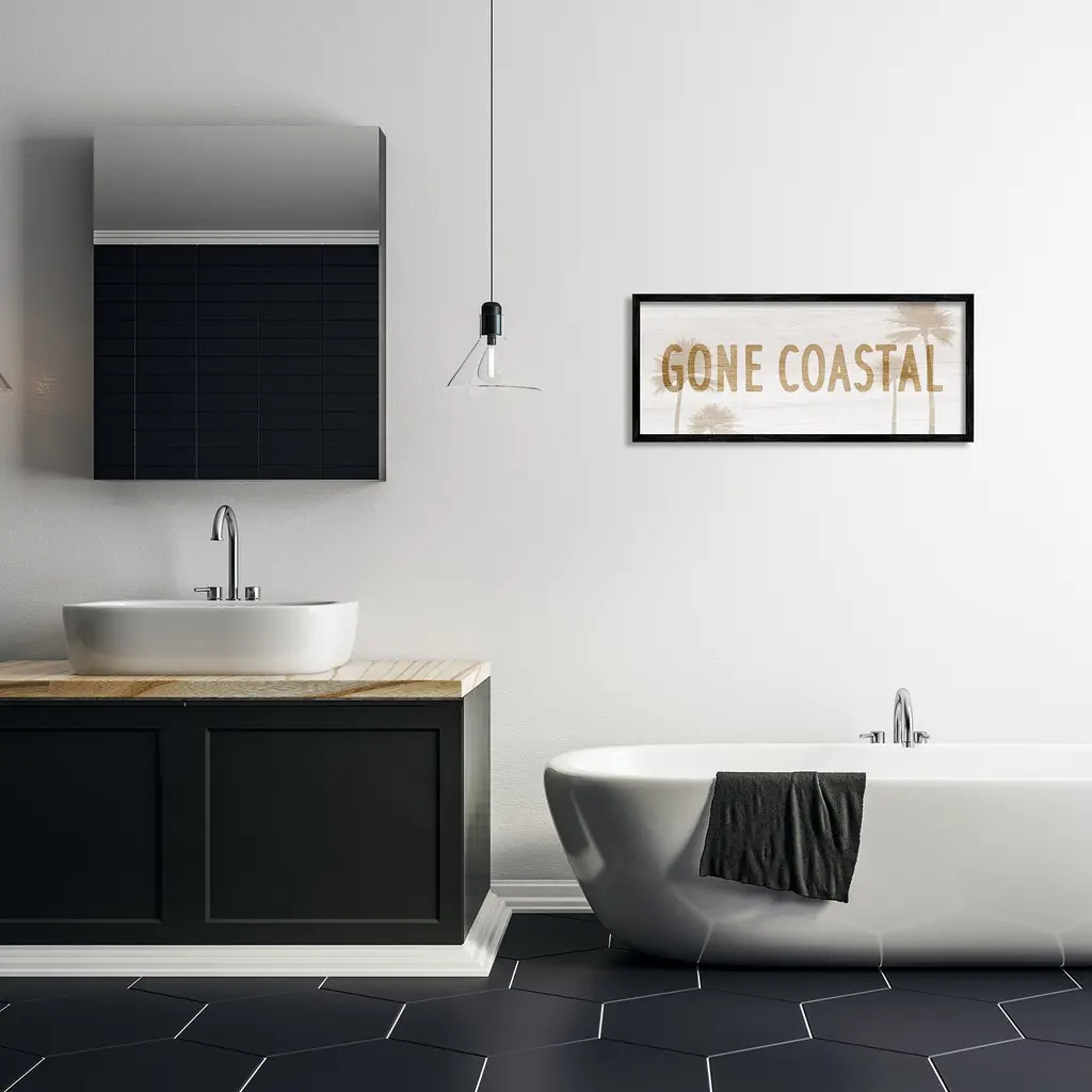 Stupell Gone Coastal Beach Pun Funny Tropical Palm Trees Framed Wall Art - Yellow - 24 X 10 - Black