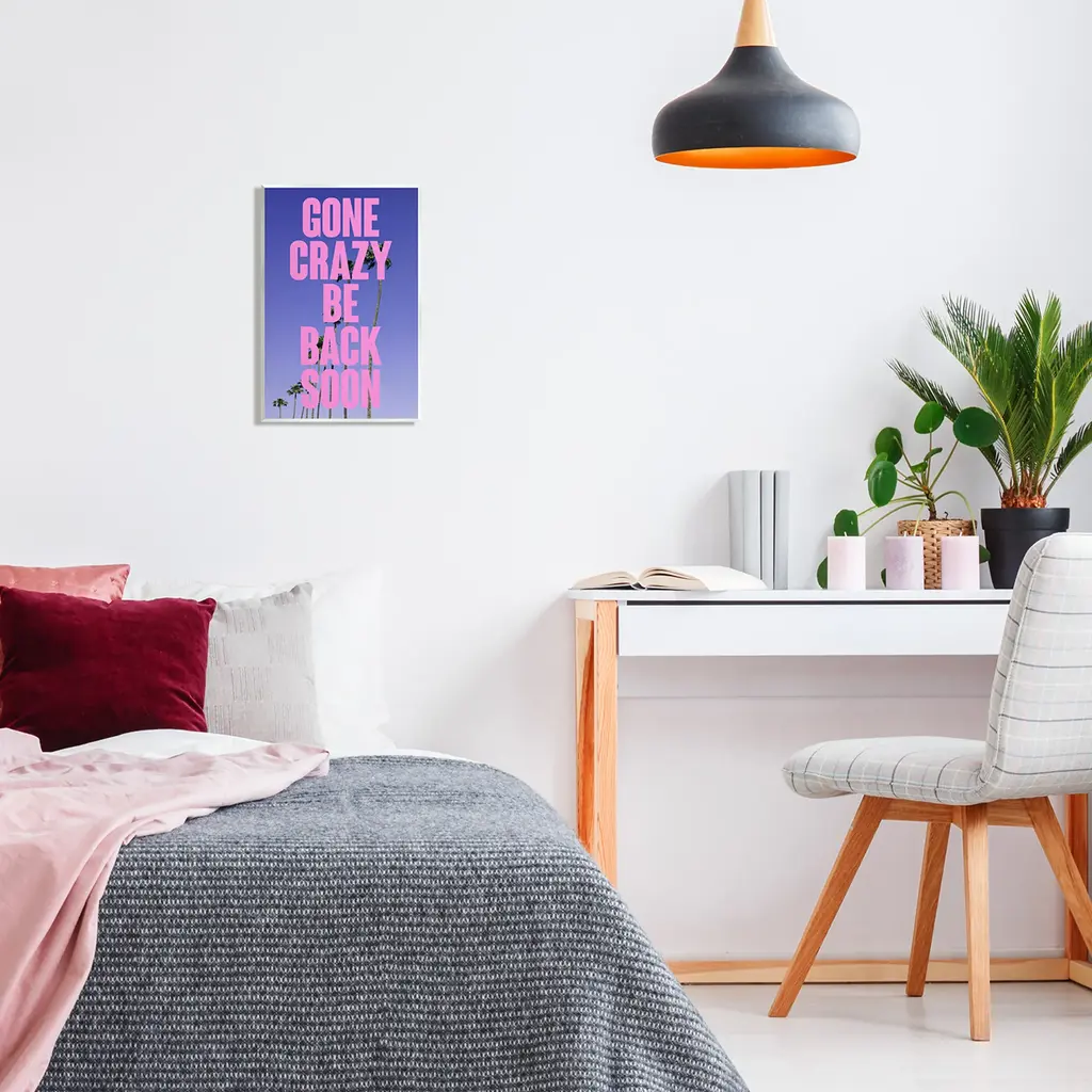 Our wall plaques start as high-quality lithograph prints mounted on durable 0.5-inch thick MDF wood. Each piece is hand finished and comes with a fresh layer of white foil on the sides to give it a crisp, clean look. Plaques arrive ready to hang without installation and come with removable plastic corners to keep them from damage in transit. Wall Art is made in the USA.Features: Dimensions: 10 x 0.5 x 15 InchesWall Plaque Sizes Include Standard: 10 x 0.5 x 15 Oversized: 13 x 0.5 x 19Wall Art is Ready to Hang with Hardware Free Hanging. No installation required. For Easy Set Up Lean or Layer Artwork on Shelf or Against Wall.All of our wall plaques start off as high quality lithograph prints that are then mounted on durable 0.5 inch thick MDF wood. Each piece is hand finished and comes with a fresh layer of foil on the sides to give it a crisp clean look. Made In USA.Artwork Relates To: Palm Tree, Tropical, Phrase, Gone Crazy Be Back SoonDesign by House of Lulu