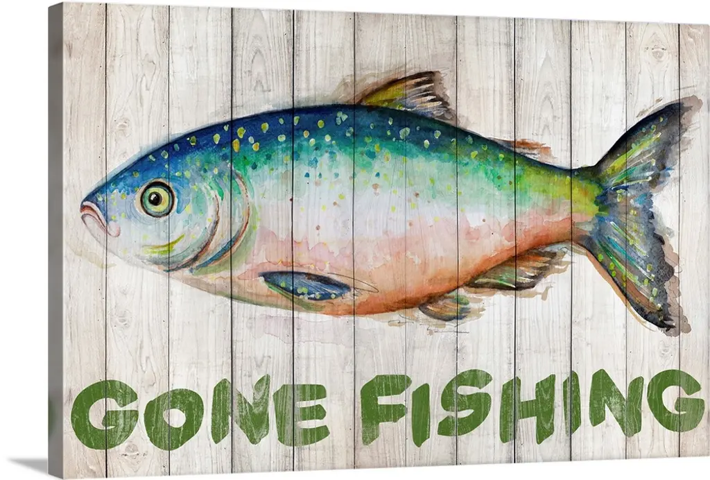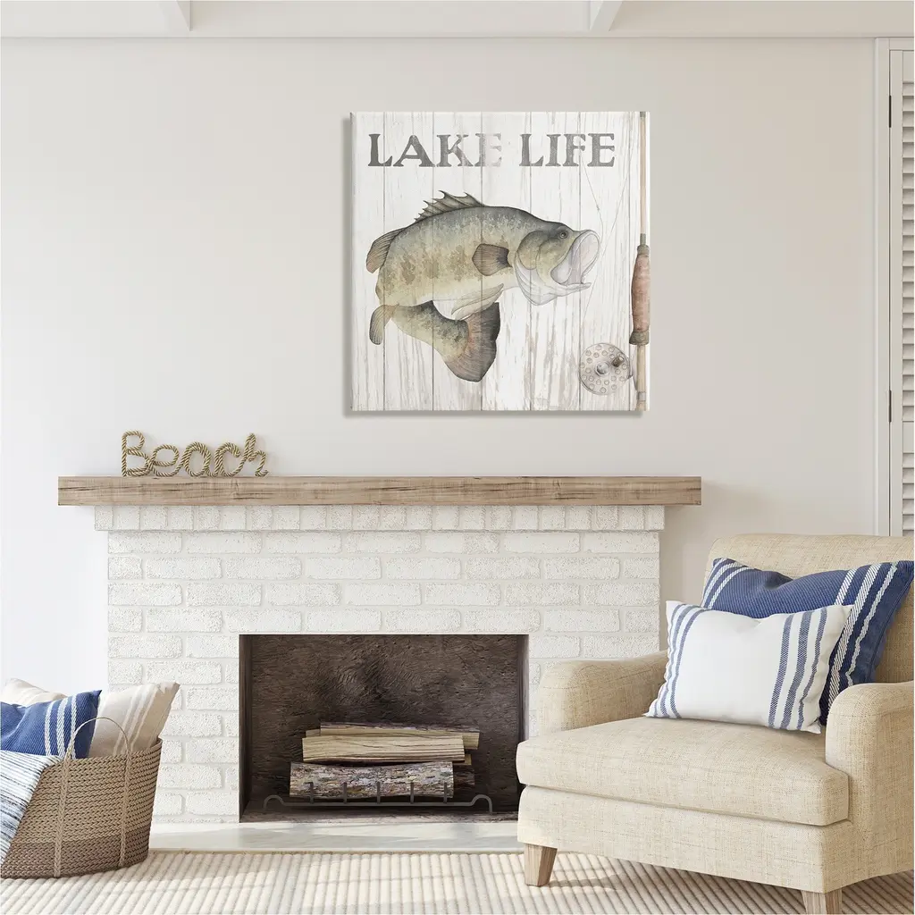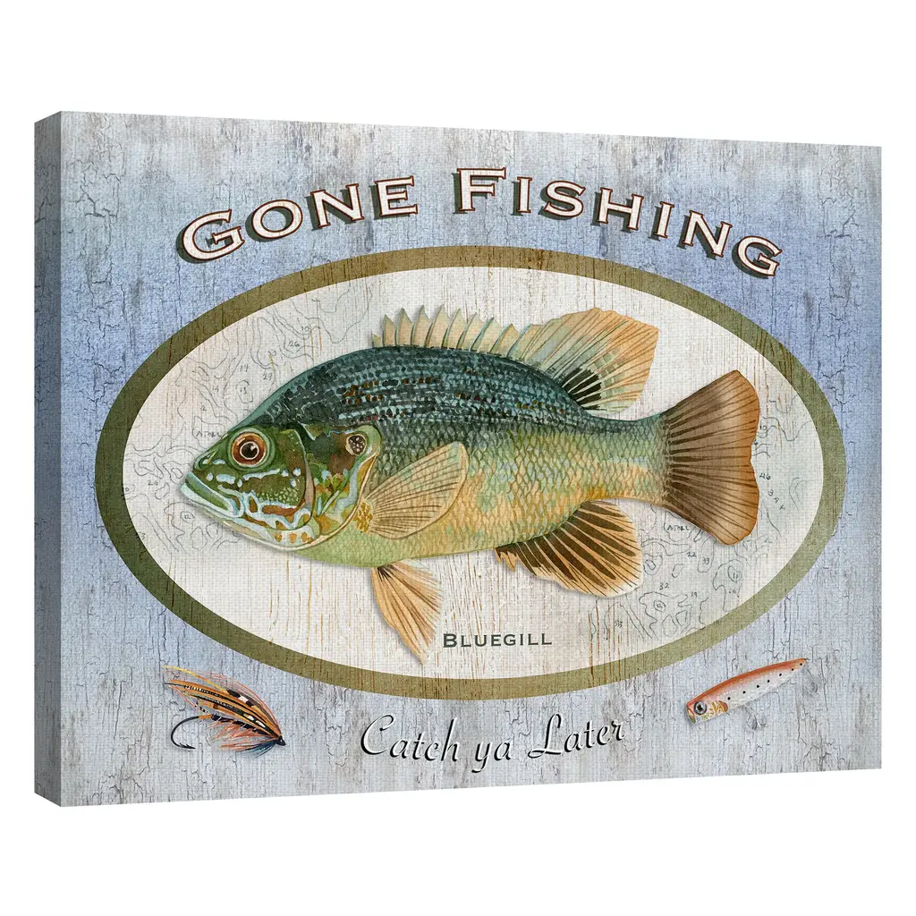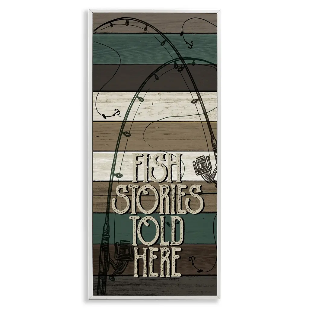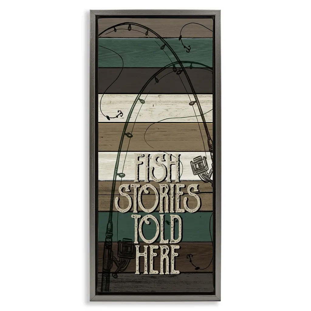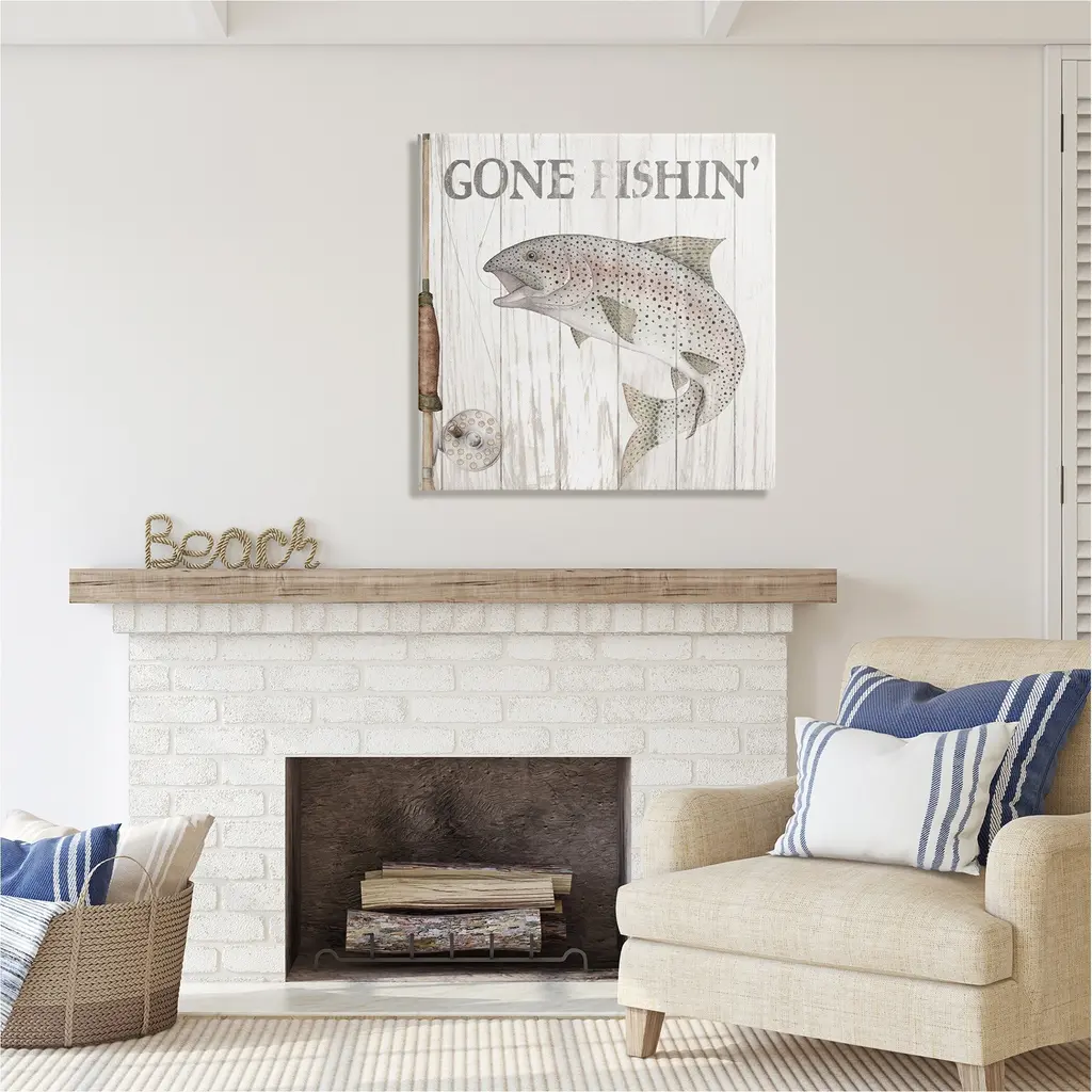 We create our stretched canvas to the highest standards. Using only the highest quality inks and canvas on Mimaki printers, we hand-cut and stretch each piece over a 1.5-inch thick wooden frame for hanging. As a result, the art comes ready to hang on the sturdy ledge with no installation required. Stupell Wall Art is made in the USA.Features: Dimensions: 17 x 1.5 x 17 InchesStretched Canvas Sizes Include Standard: 17 x 1.5 x 17 Large: 24 x 1.5 x 24 X-Large: 30 x 1.5 x 30 Oversized: 36 x 1.5 x 36Wall Art is Ready to Hang with Hardware Free Hanging. No installation required. For Easy Set Up Lean or Layer Artwork on Shelf or Against Wall.Our stretched canvas is created with the highest standards. We use only the highest quality inks and canvas on our in house Mimaki printers, and then hand cut and stretch each piece over a 1.5 inch thick wooden frame for hanging. Made In USA.Artwork Relates To: Animal, Fish, Sea Life, Trout, Sign, Fishing, Gone Fishin'Design by Wild Apple Portfolio