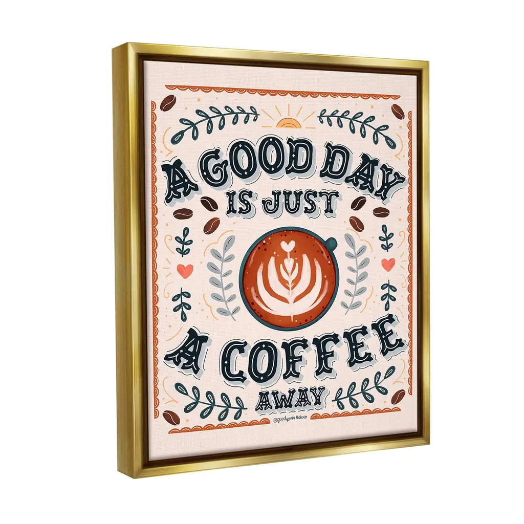 Stupell Good Day A Coffee Away Framed Floater Canvas Wall Art Design By Glad You're Here Co. - 25 X 31 - Gold