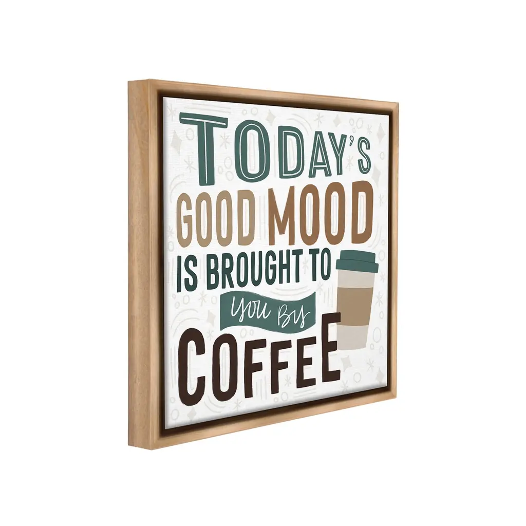 Elevate your home or office to the next level with Stupell Framed Floating Canvas Wall Art. Our premium hand-stretched canvas is mounted securely into a sturdy lightweight frame. The museum-style gap between the wrapped canvas and the box frame gives the illusion of floating artwork. Stupell Wall Art is made in the USA.Features: Dimensions: 18 x 1.7 x 18 Frame, 17 x 1.5 x 17 Canvas ArtFloating Frame Canvas Products are available in sizes 18"x18" and 25"x25". All Floating Frame Canvas Products have a 1.7" Depth.Wall Art is Ready to Hang with Hardware Free Hanging. No Installation required. For Easy Set Up Lean or Layer Artwork on Shelf or Against Wall. Artwork is Permently Fixed into the Frame.Our elevated 1.7" Thick Floating Frame is the perfect complement to our canvas style Wall Art. We use only the highest quality inks in house with industry leading printing solutions. Canvas is hand stretched over a durable wood foundation and then mounted securly into a Modern Box Frame. Made in the USA.Artwork Relates To: Beverage, Coffee, Coffee Cup, Pattern, Humor, Funny, Sassy, Today's Good Mood is Brought to You By CoffeeDesign by Lady Louise Designs