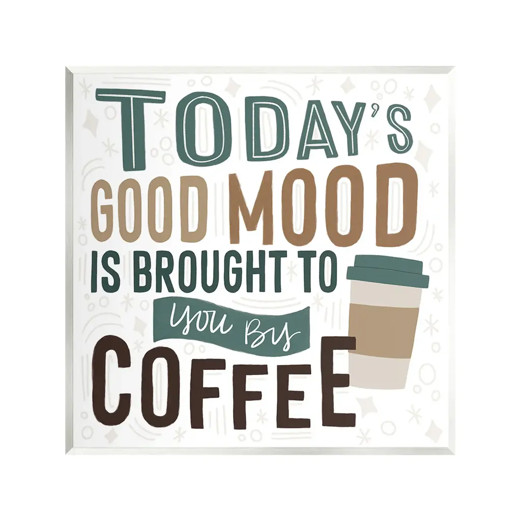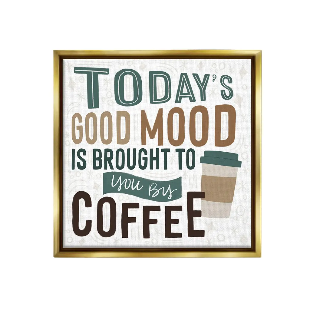 Add dimension to any room with our textured Framed Giclee Artwork. Our framed artwork is securely mounted into a 1.5-inch thick wood grain frame and ready to hang. Frames are available in three alluring styles: black, gray farmhouse and white. In addition, you should check out our oversized options if you want a statement piece. Stupell Wall Art is made in the USA.Features: Dimensions: 12 x 1.5 x 12 FramedFramed Giclee Product Sizes Include 12"x12", 17"x17", and 24"x24". Framed Giclee Products have a 1.5" Depth. Wall Art is Ready to Hang with Hardware Free Hanging. No installation required. For Easy Set Up Lean or Layer Artwork on Shelf or Against Wall.Our giclée prints are carefully mounted on a durable MDF backing, and then perfectly finished in a 1.5 inch thick woodgrain frame. Mounted frame colors include black, gray farmhouse and white. Made In USA.Artwork Relates To: Beverage, Coffee, Coffee Cup, Pattern, Humor, Funny, Sassy, Today's Good Mood is Brought to You By CoffeeDesign by Lady Louise Designs