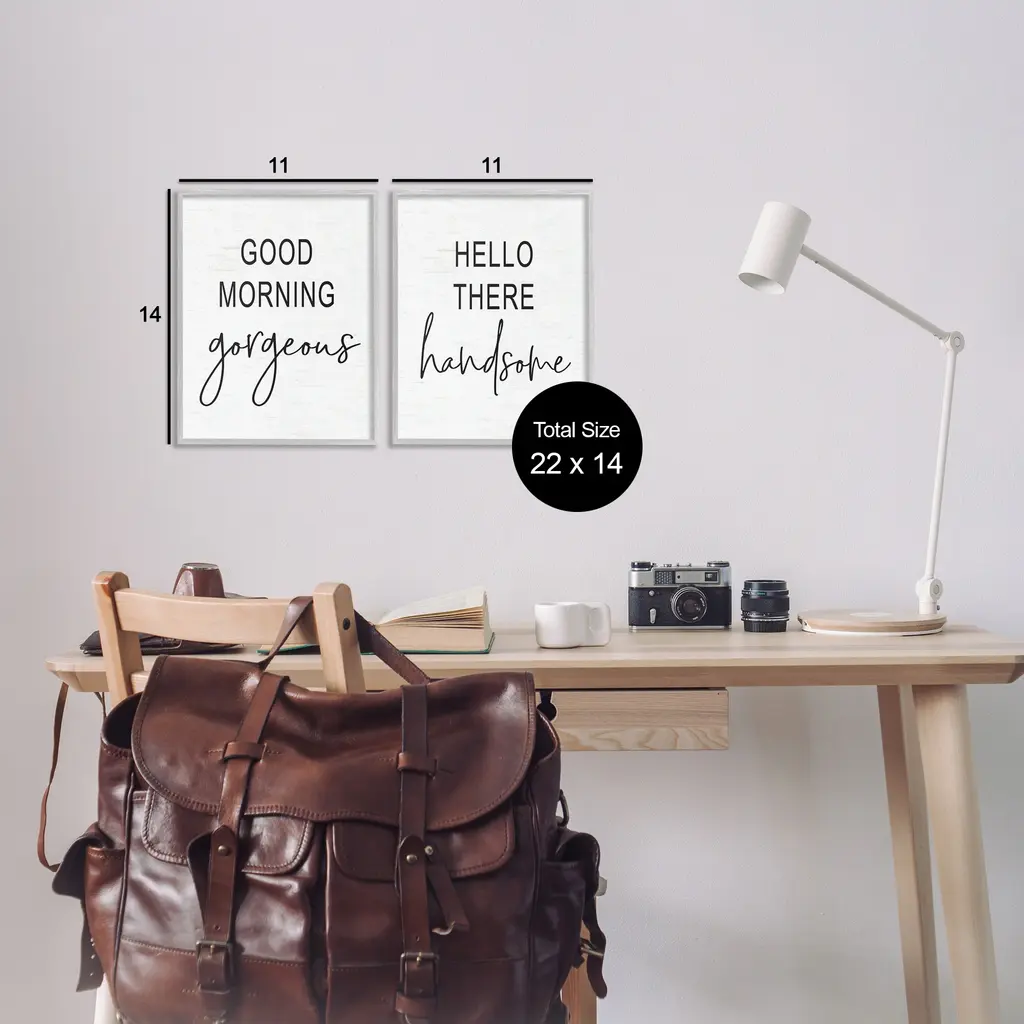 Stupell Good Morning Gorgeous Hello There Handsome Romantic Phrases 2Pc Multi Piece Framed Wall Art Set - Black - 11 X 14 - Grey