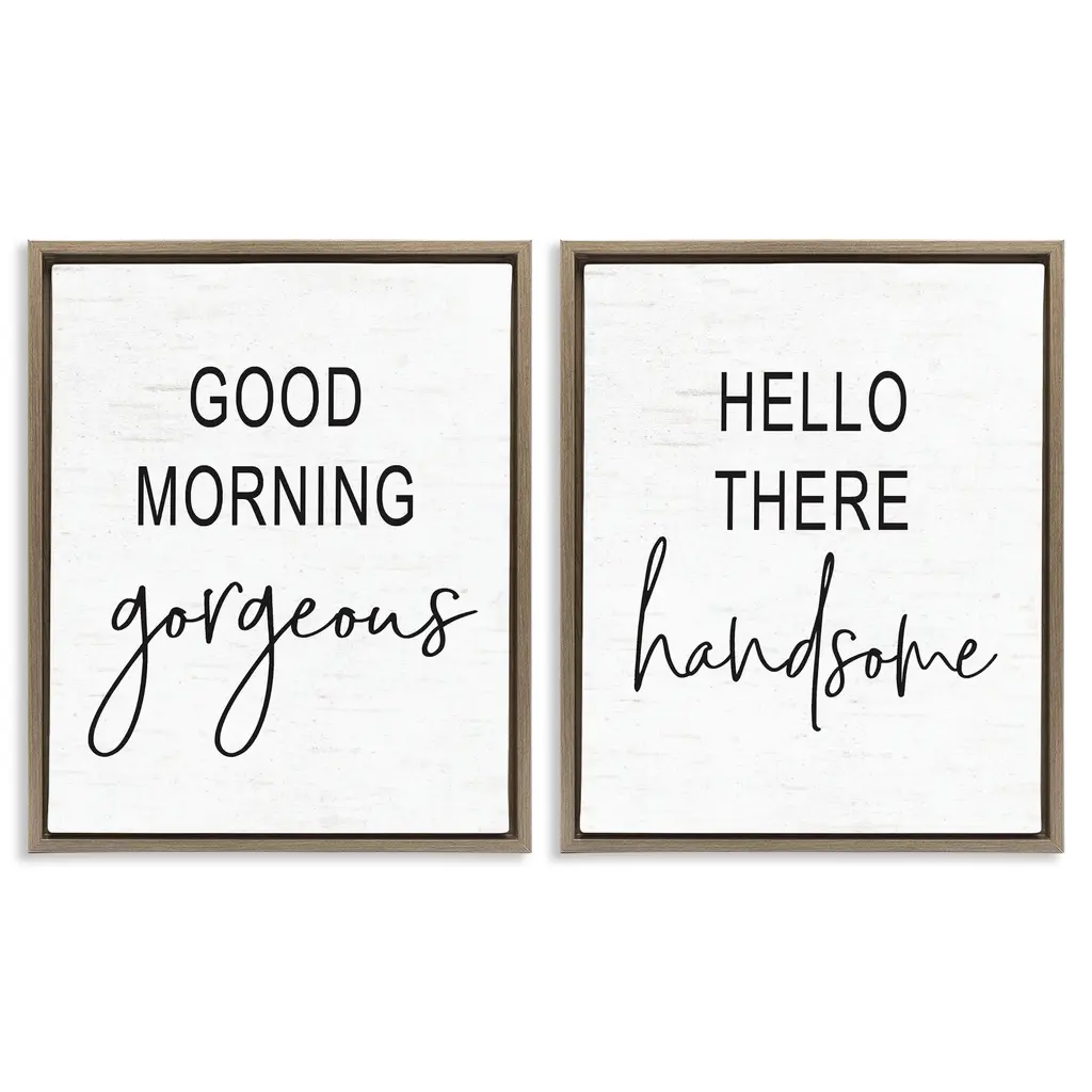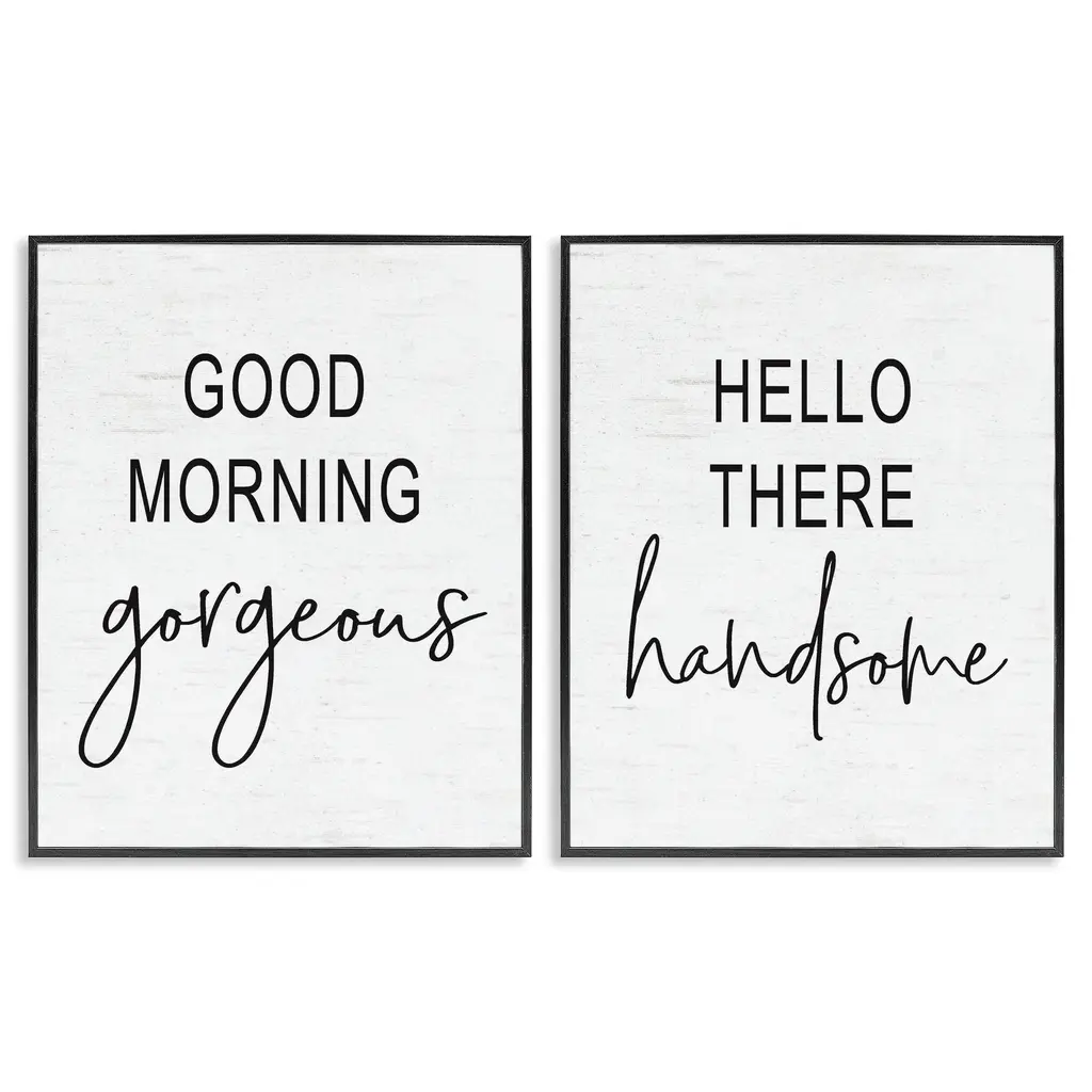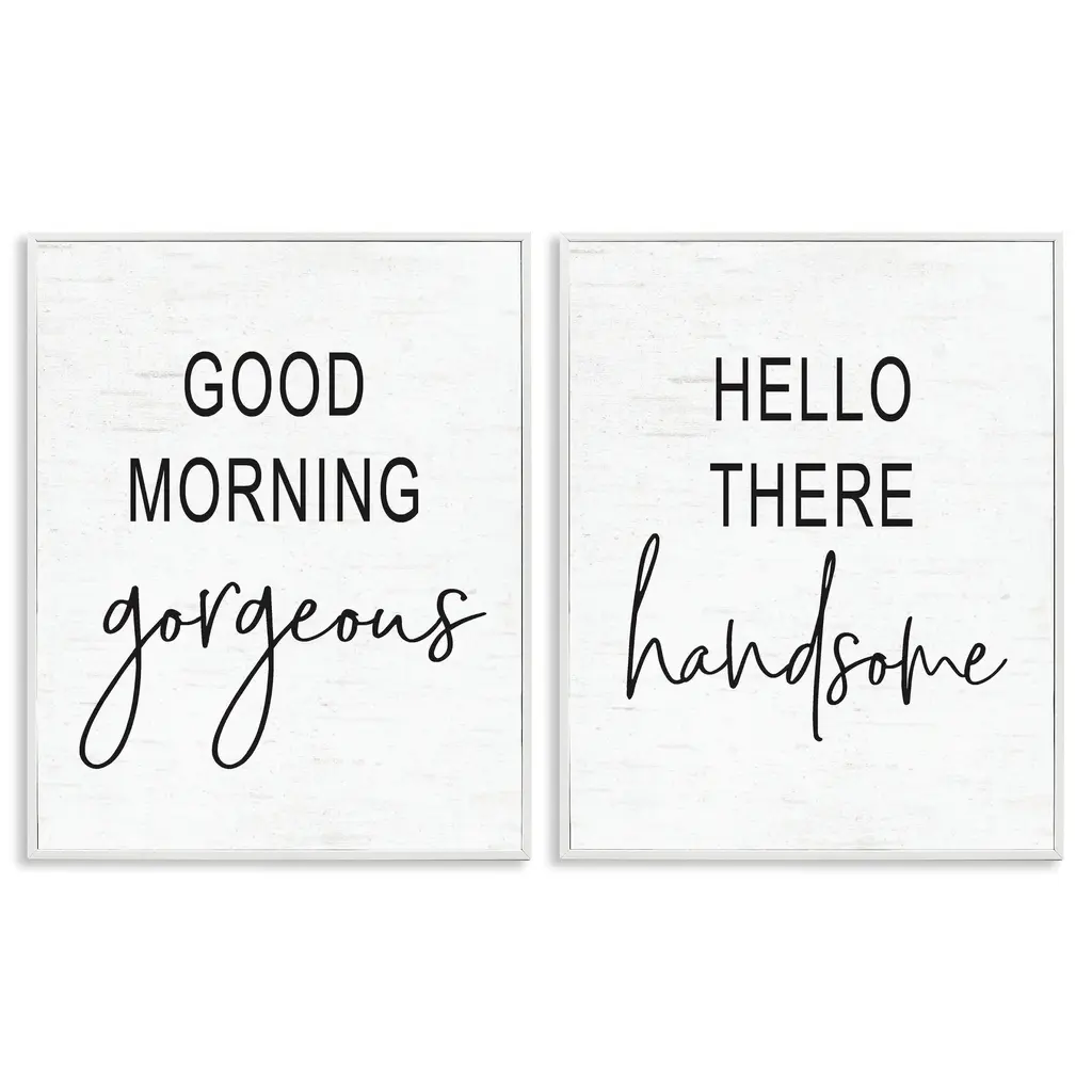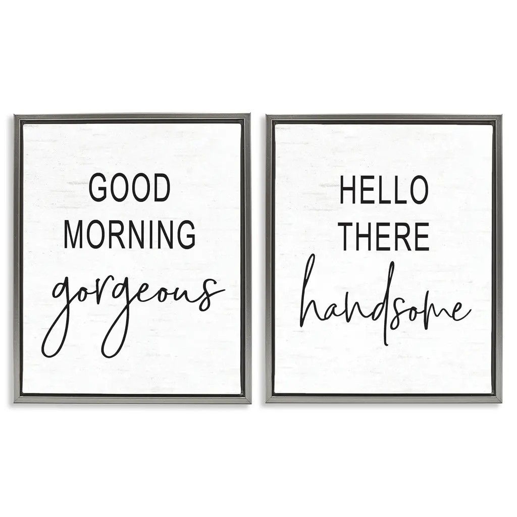 Stupell Good Morning Gorgeous Hello There Handsome Romantic Phrases 2Pc Multi Piece Framed Wall Art Set - Black - 16 X 20 - Grey