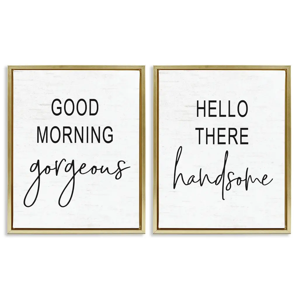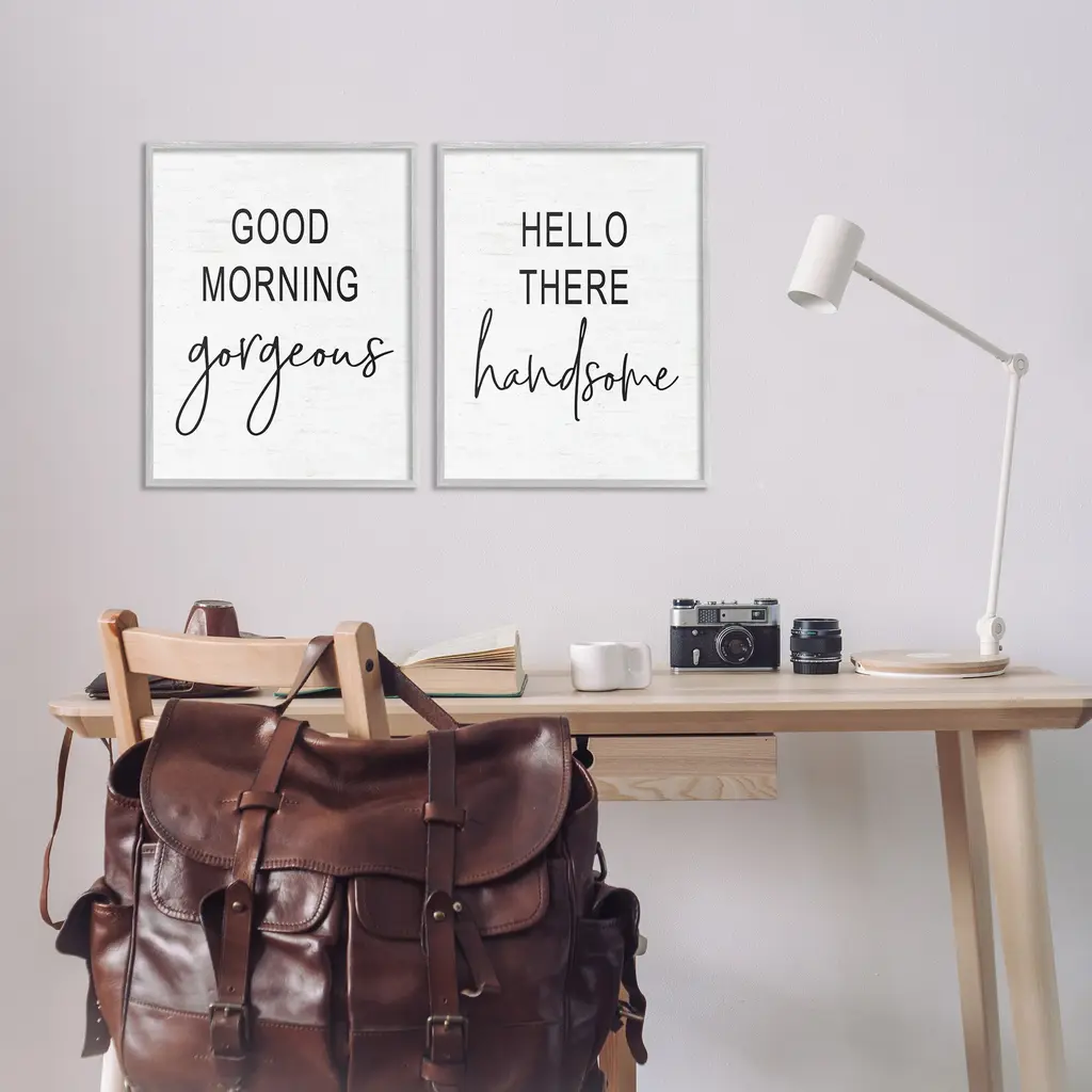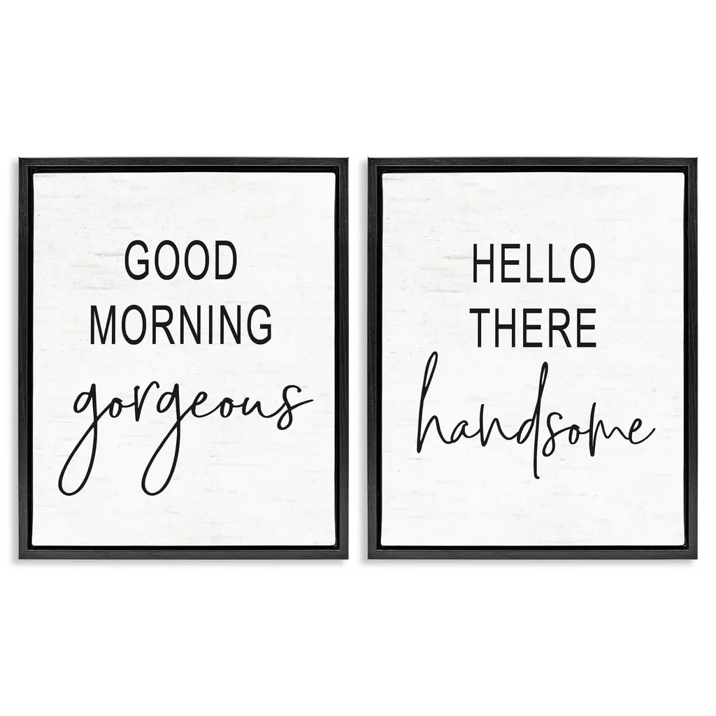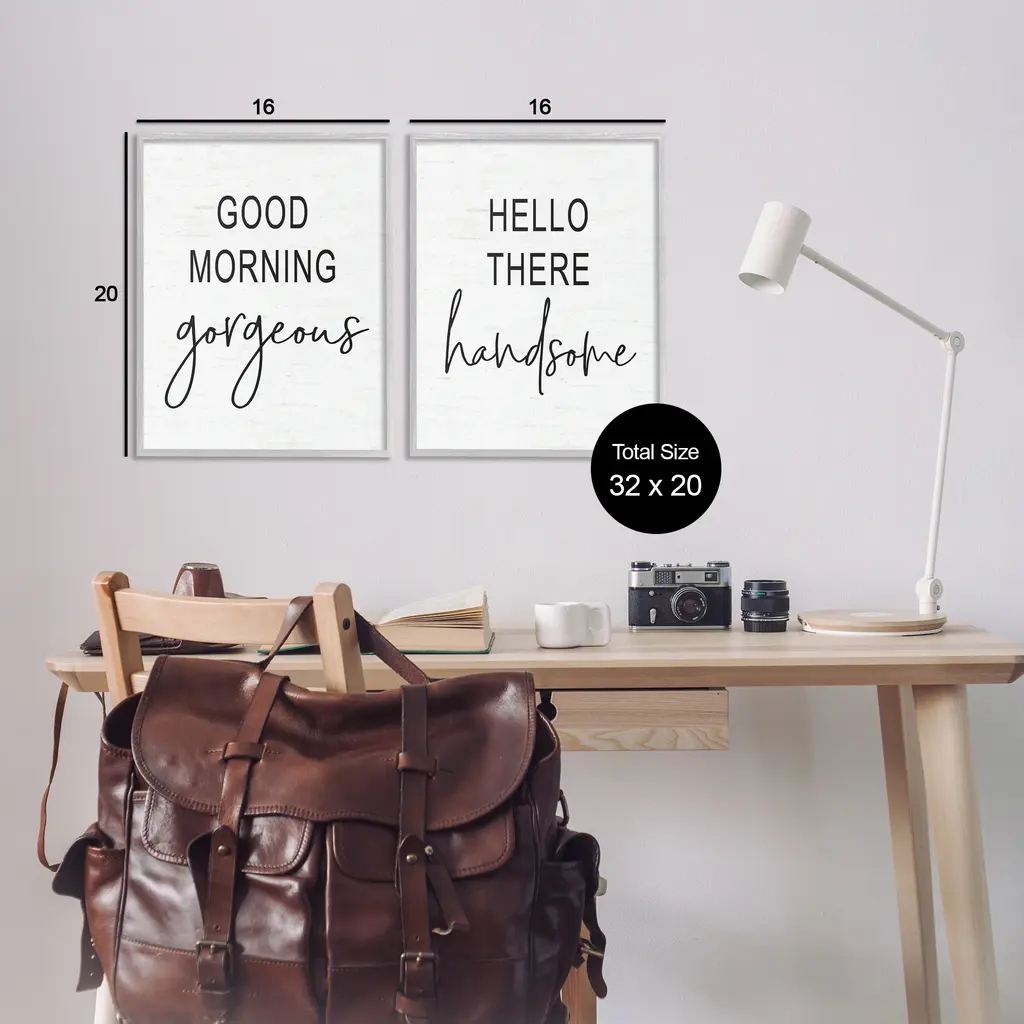 Stupell Good Morning Gorgeous Hello There Handsome Romantic Phrases 2Pc Multi Piece Framed Wall Art Set - Black - 16 X 20 - Grey