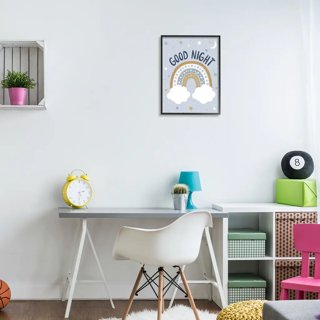 Stupell Good Night Astronomical Rainbow Outer Space Symbol Stripes Framed Wall Art, Design By Ilis Aviles - Blue - 16 X 20 - Black