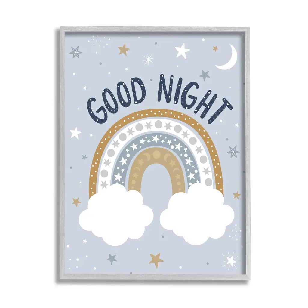 Stupell Good Night Astronomical Rainbow Outer Space Symbol Stripes Framed Wall Art, Design By Ilis Aviles - Blue - 24 X 30 - Black