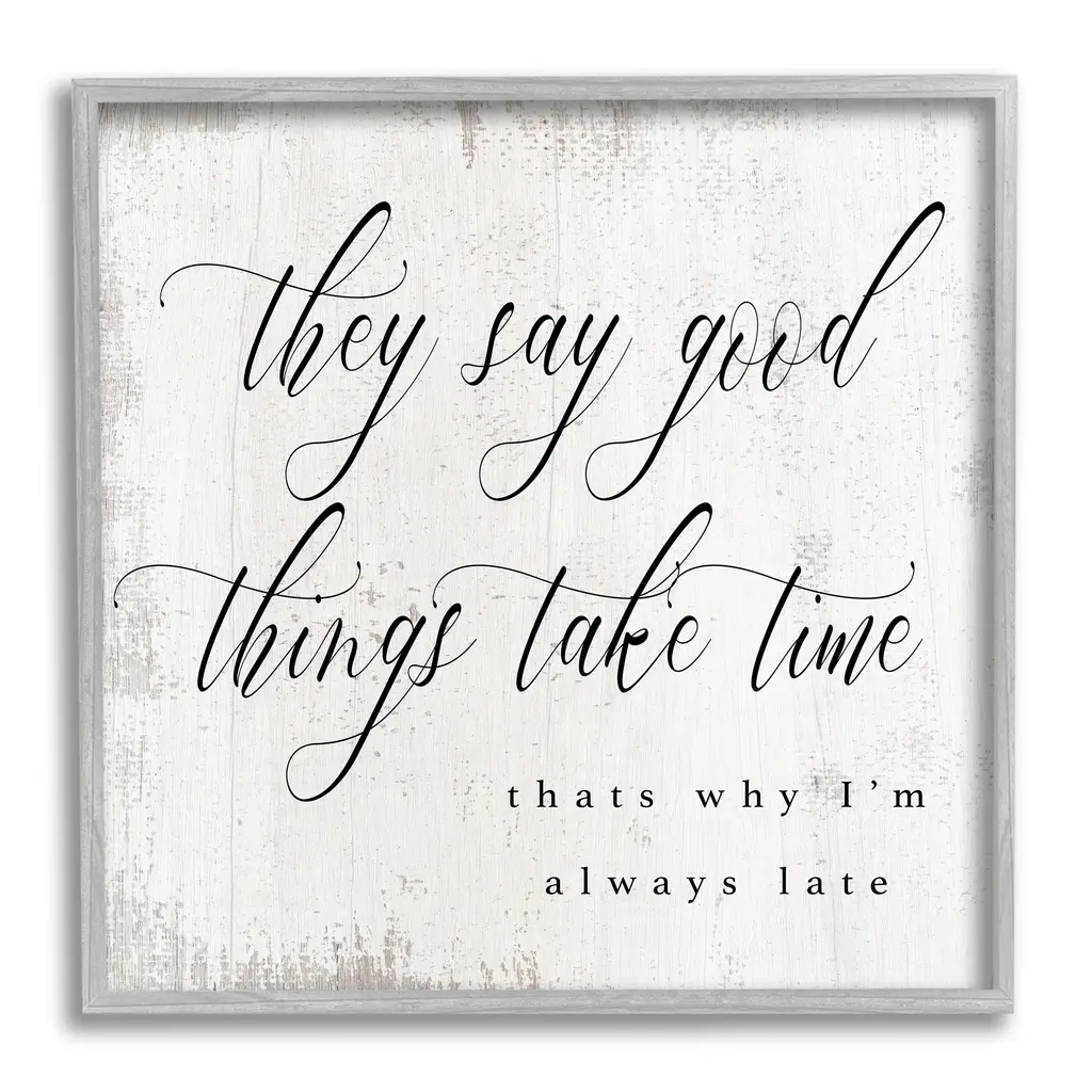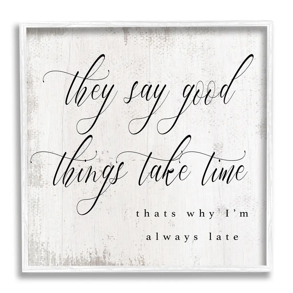 Stupell Good Things Take Time Amusing Lateness Excuse Phrase Framed Wall Art, Design By Daphne Polselli - Black - 24 X 24 - Black