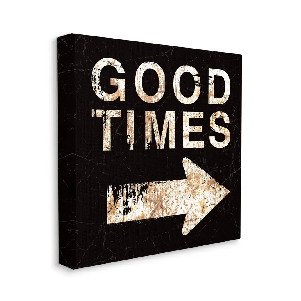 We create our stretched canvas to the highest standards. Using only the highest quality inks and canvas on Mimaki printers, we hand-cut and stretch each piece over a 1.5-inch thick wooden frame for hanging. As a result, the art comes ready to hang on the sturdy ledge with no installation required. Stupell Wall Art is made in the USA.Features: Dimensions: 17 x 1.5 x 17 InchesStretched Canvas Sizes Include Standard: 17 x 1.5 x 17 Large: 24 x 1.5 x 24 X-Large: 30 x 1.5 x 30 Oversized: 36 x 1.5 x 36Wall Art is Ready to Hang with Hardware Free Hanging. No installation required. For Easy Set Up Lean or Layer Artwork on Shelf or Against Wall.Our stretched canvas is created with the highest standards. We use only the highest quality inks and canvas on our in house Mimaki printers, and then hand cut and stretch each piece over a 1.5 inch thick wooden frame for hanging. Made In USA.Artwork Relates To: Phrase, Good Times, Rustic, ArrowDesign by Peter Horjus