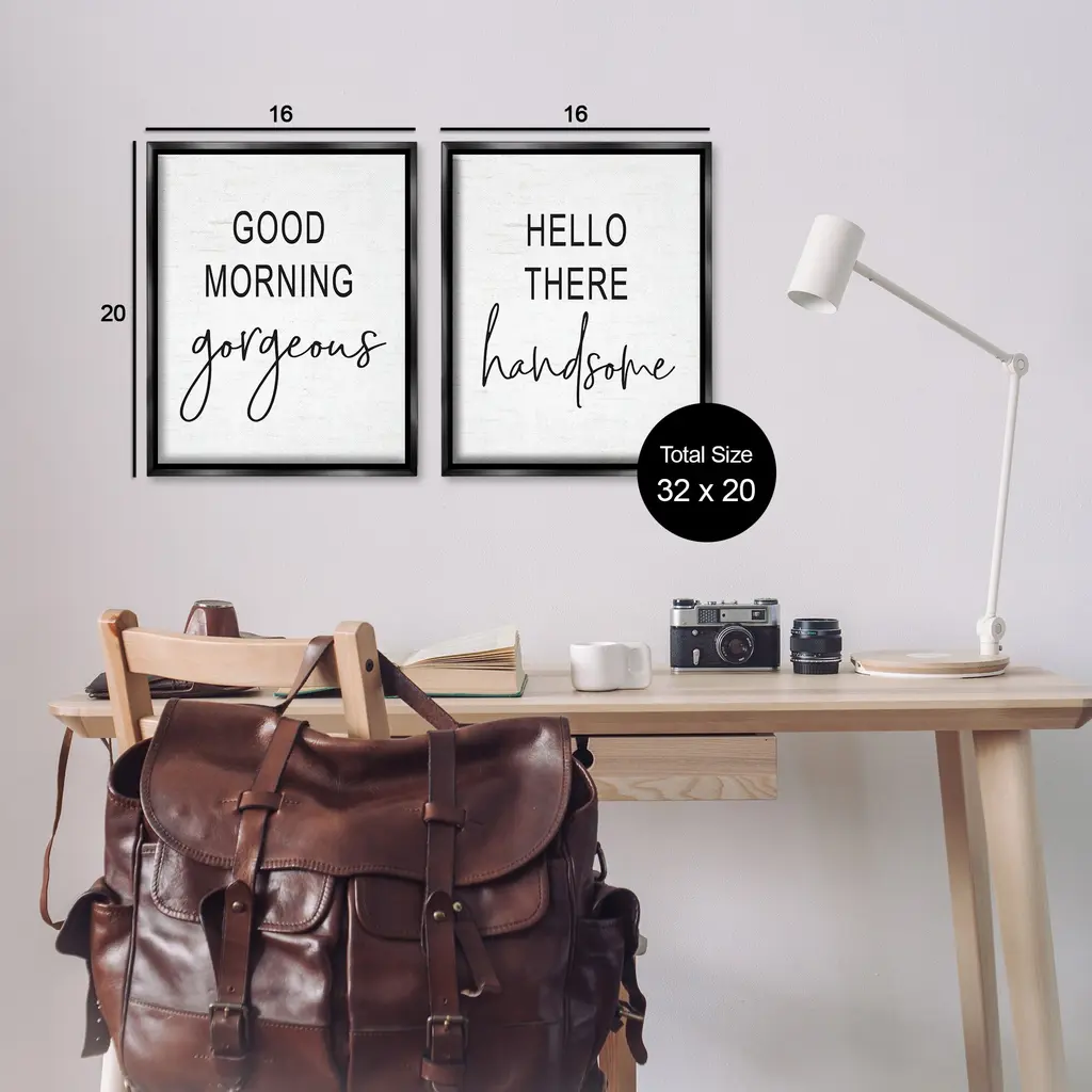 Stupell Gorgeous & Handsome Romantic Greetings Framed Floater Canvas Wall Art Design By Lettered And Lined (Set Of 2) - 17 X 21 - Black