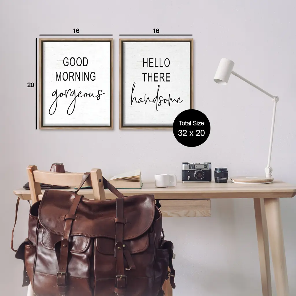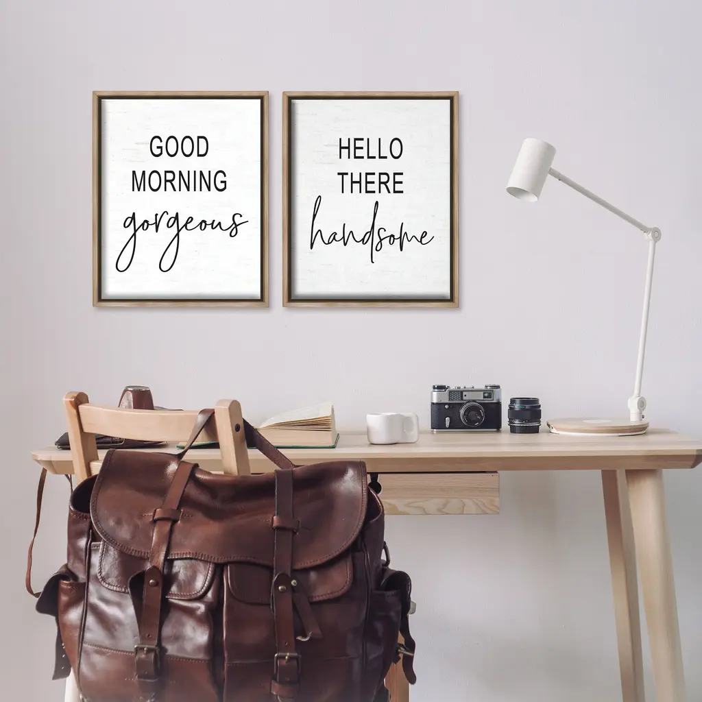 Stupell Gorgeous & Handsome Romantic Greetings Framed Floater Canvas Wall Art Design By Lettered And Lined (Set Of 2) - 17 X 21 - Brown