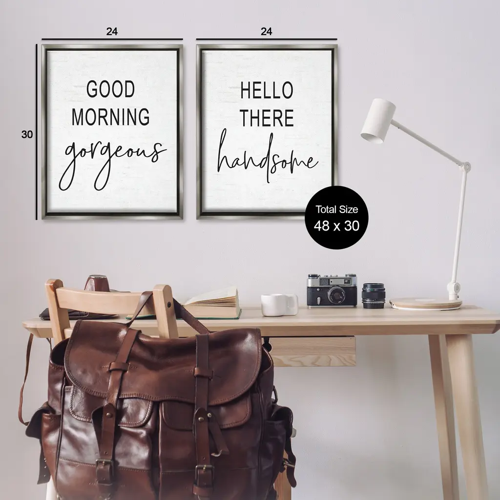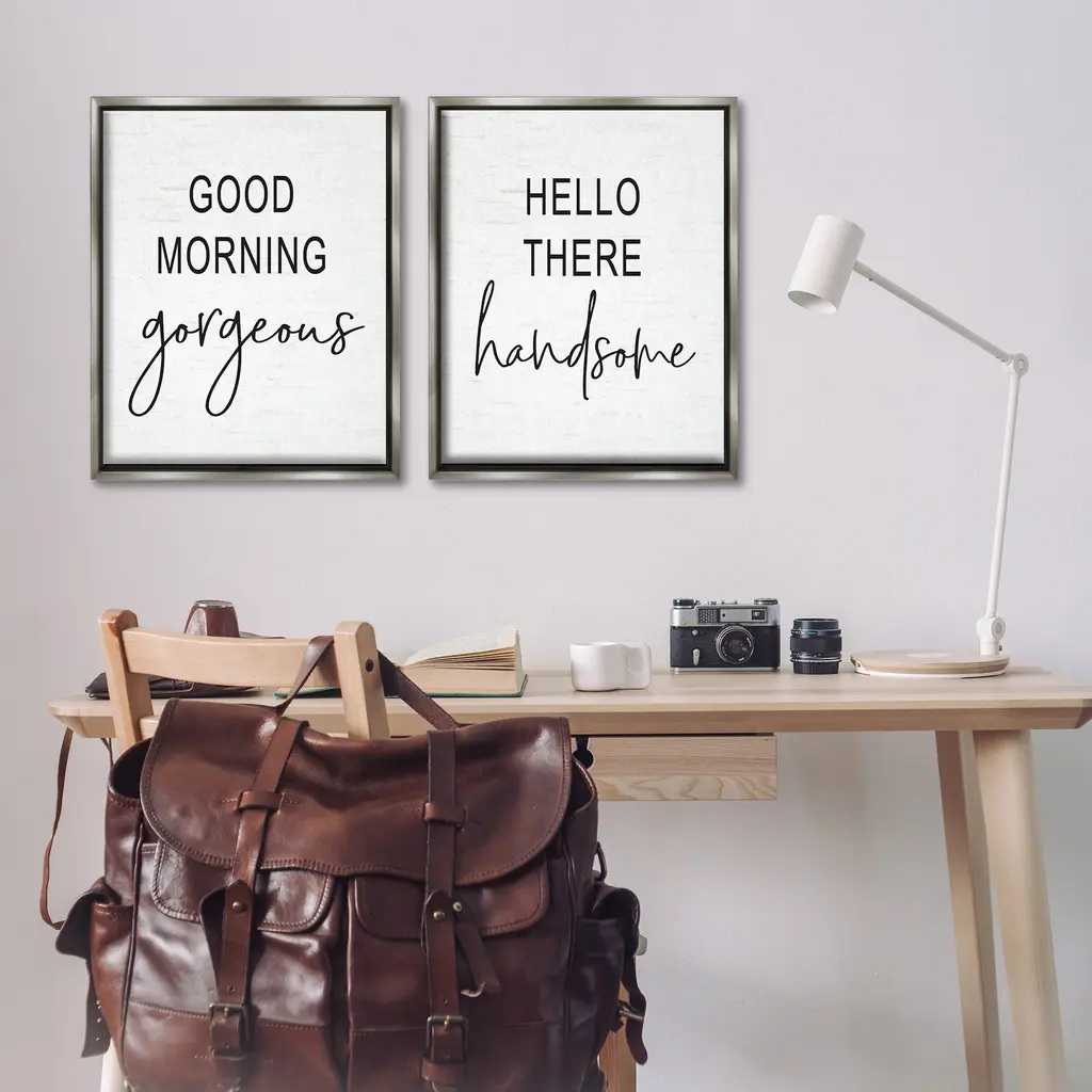 Stupell Gorgeous & Handsome Romantic Greetings Framed Floater Canvas Wall Art Design By Lettered And Lined (Set Of 2) - 25 X 31 - Grey
