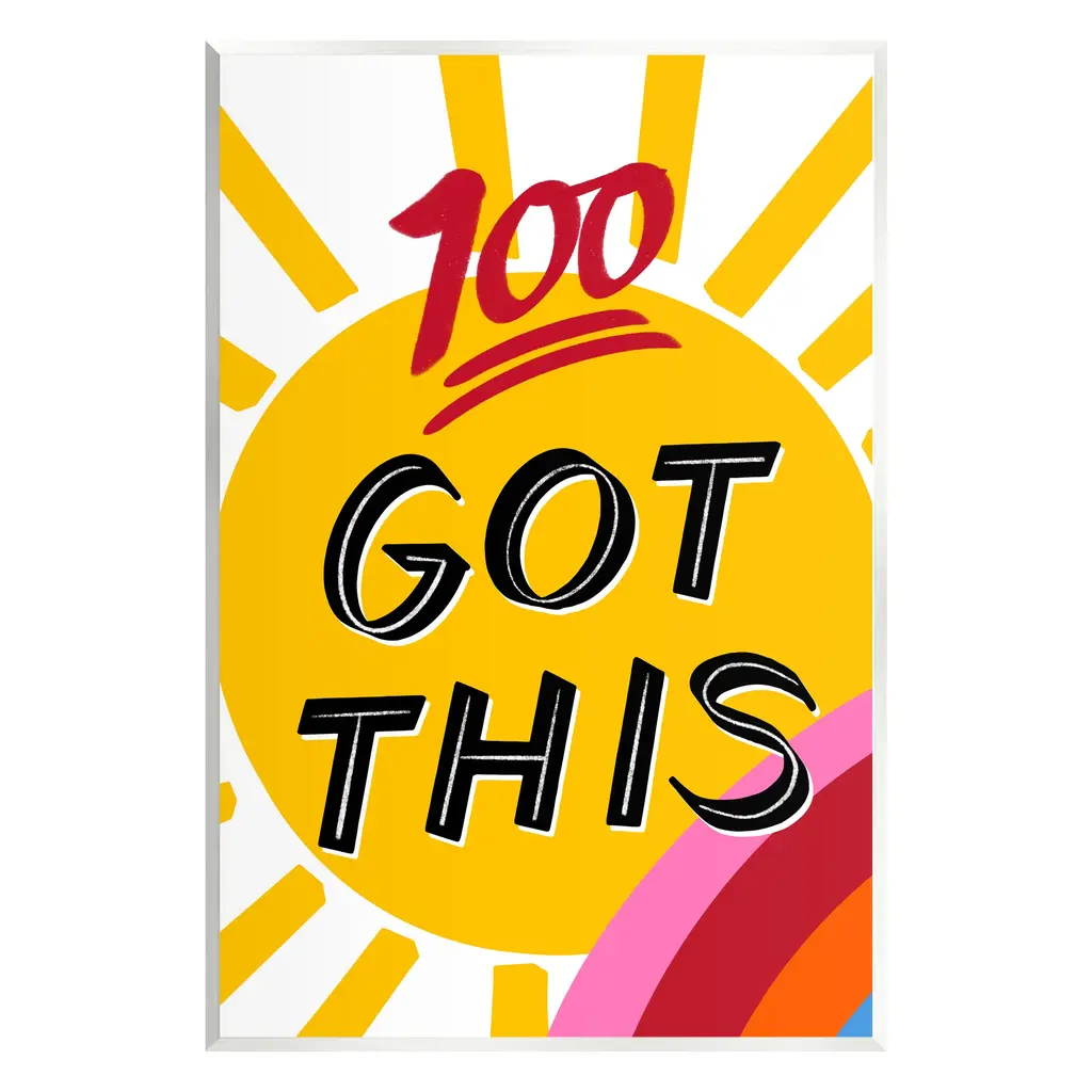 Our wall plaques start as high-quality lithograph prints mounted on durable 0.5-inch thick MDF wood. Each piece is hand finished and comes with a fresh layer of white foil on the sides to give it a crisp, clean look. Plaques arrive ready to hang without installation and come with removable plastic corners to keep them from damage in transit. Stupell Wall Art is made in the USA.Features: Dimensions: 10 x 0.5 x 15 InchesWall Plaque Sizes Include Standard: 10 x 0.5 x 15 Oversized: 13 x 0.5 x 19Wall Art is Ready to Hang with Hardware Free Hanging. No installation required. For Easy Set Up Lean or Layer Artwork on Shelf or Against Wall.All of our wall plaques start off as high quality lithograph prints that are then mounted on durable 0.5 inch thick MDF wood. Each piece is hand finished and comes with a fresh layer of foil on the sides to give it a crisp clean look. Made In USA.Artwork Relates To: Sun, Nature, Rainbow, Phrase, Inspiring, 100 Got thisDesign by Pragya Kothari
