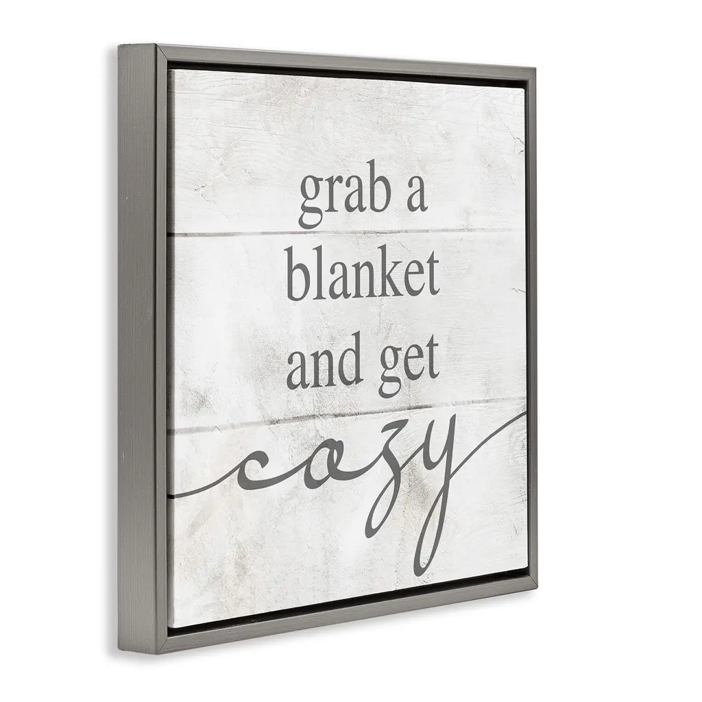 Stupell Grab Blanket Get Cozy Phrase Framed Floater Canvas Wall Art Design By Lil' Rue - 18 X 18 - Grey