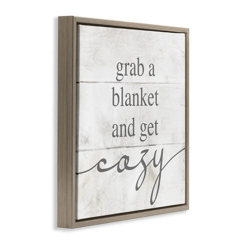 Stupell Grab Blanket Get Cozy Phrase Framed Floater Canvas Wall Art Design By Lil' Rue - 25 X 25 - Brown