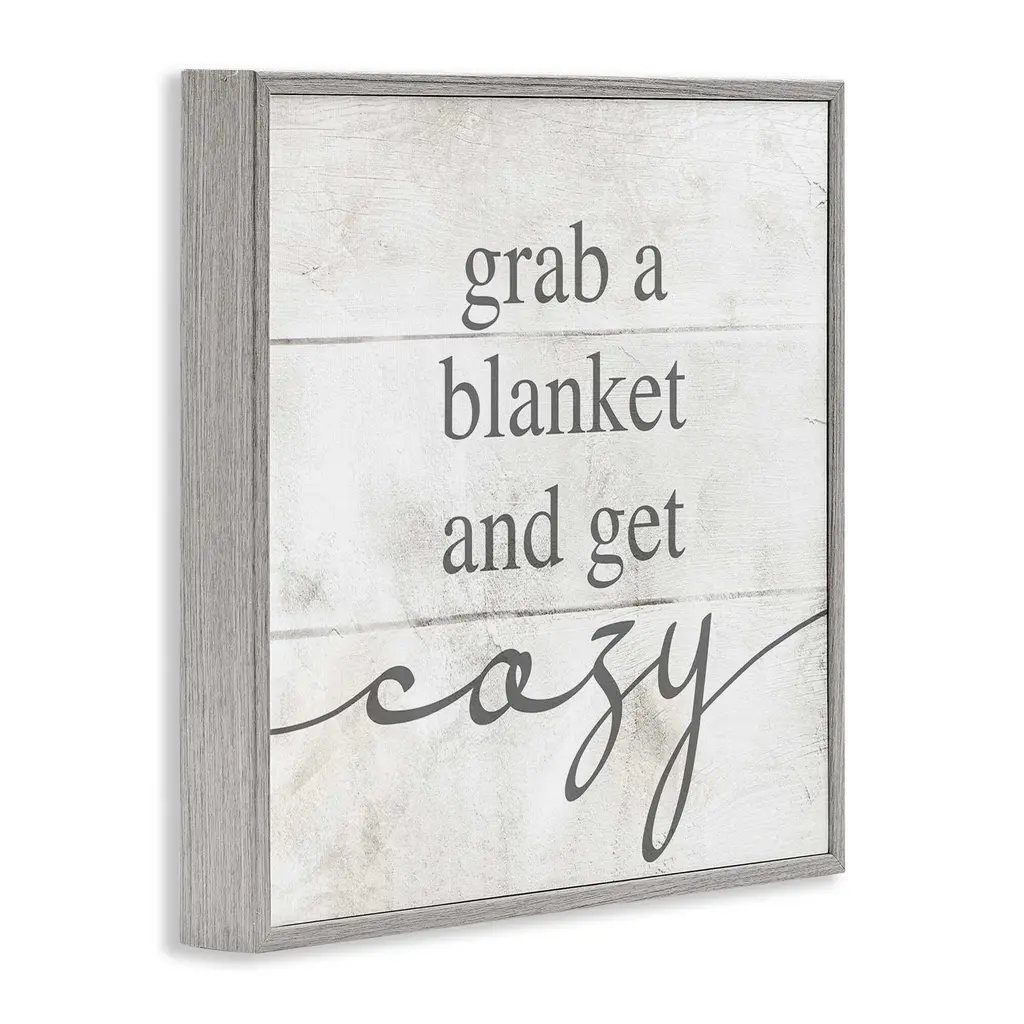 Stupell Grab Blanket Get Cozy Phrase Framed Giclee Art, Design By Lil' Rue - 12 X 12 - Grey