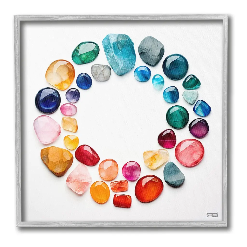Elevate your home or office to the next level with Stupell Framed Floating Canvas Wall Art. Our premium hand-stretched canvas is mounted securely into a sturdy lightweight frame. The museum-style gap between the wrapped canvas and the box frame gives the illusion of floating artwork. Stupell Wall Art is made in the USA.Features: Dimensions: 18 x 1.7 x 18 Frame, 17 x 1.5 x 17 Canvas ArtFloating Frame Canvas Products are available in sizes 18"x18" and 25"x25". All Floating Frame Canvas Products have a 1.7" Depth.Wall Art is Ready to Hang with Hardware Free Hanging. No Installation required. For Easy Set Up Lean or Layer Artwork on Shelf or Against Wall. Artwork is Permently Fixed into the Frame.Our elevated 1.7" Thick Floating Frame is the perfect complement to our canvas style Wall Art. We use only the highest quality inks in house with industry leading printing solutions. Canvas is hand stretched over a durable wood foundation and then mounted securly into a Modern Box Frame. Made in the USA.Artwork Relates To: Gemstone, Jewelry, Turquoise, Mineral, Crystal, Quartz, Emerald, Pebble, Rock, NatureDesign by RB