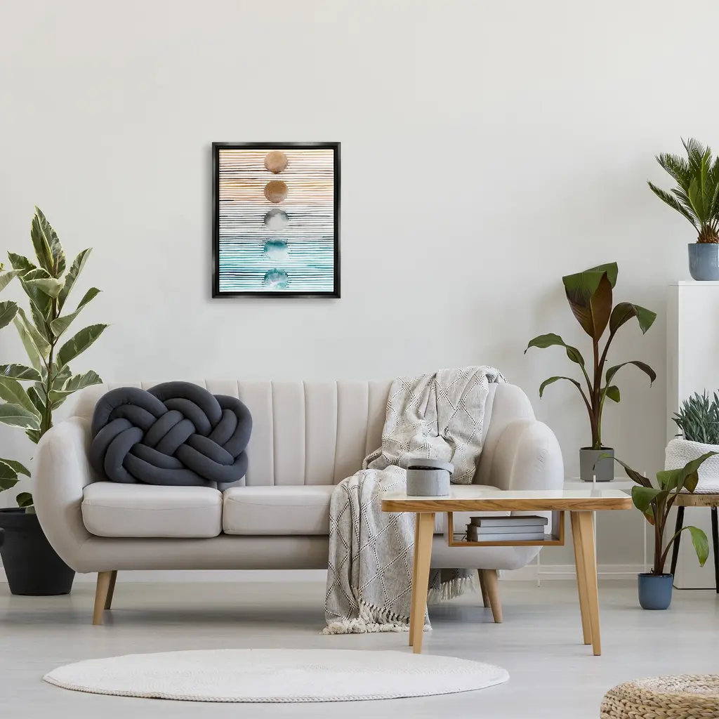 Elevate your home or office to the next level with Stupell Framed Floating Canvas Wall Art. Our premium hand-stretched canvas is mounted securely into a sturdy lightweight frame. The museum-style gap between the wrapped canvas and the box frame gives the illusion of floating artwork. Stupell Wall Art is made in the USA.Features: Dimensions: 17 x 1.7 x 21 Frame, 16 x 1.5 x 20 Canvas ArtFloating Frame Sizes Include Standard: 17 x 1.7 x 21 Oversized: 25 x 1.7 x 31Wall Art is Ready to Hang with Hardware Free Hanging. No installation required. For Easy Set Up Lean or Layer Artwork on Shelf or Against Wall.Our elevated 1.7" Thick Floating Frame is the perfect complement to our canvas style Wall Art. We use only the highest quality inks in house with industry leading printing solutions. Canvas is hand stretched over a durable wood foundation and then mounted securly into a Modern Box Frame. Made in the USA.Artwork Relates To: Stripes, Pattern, Circles, Geometric, Abstract, ModernDesign by Grace Popp
