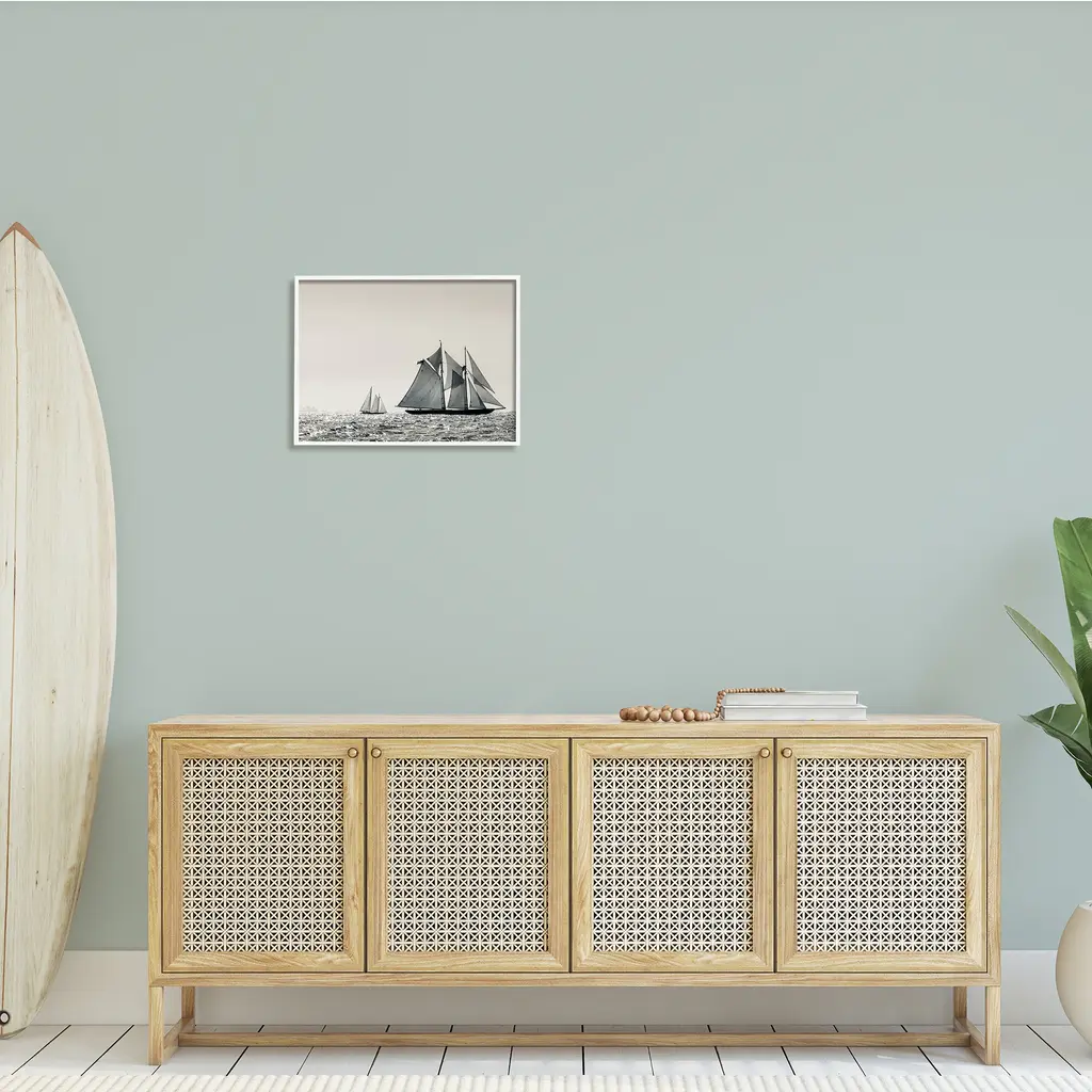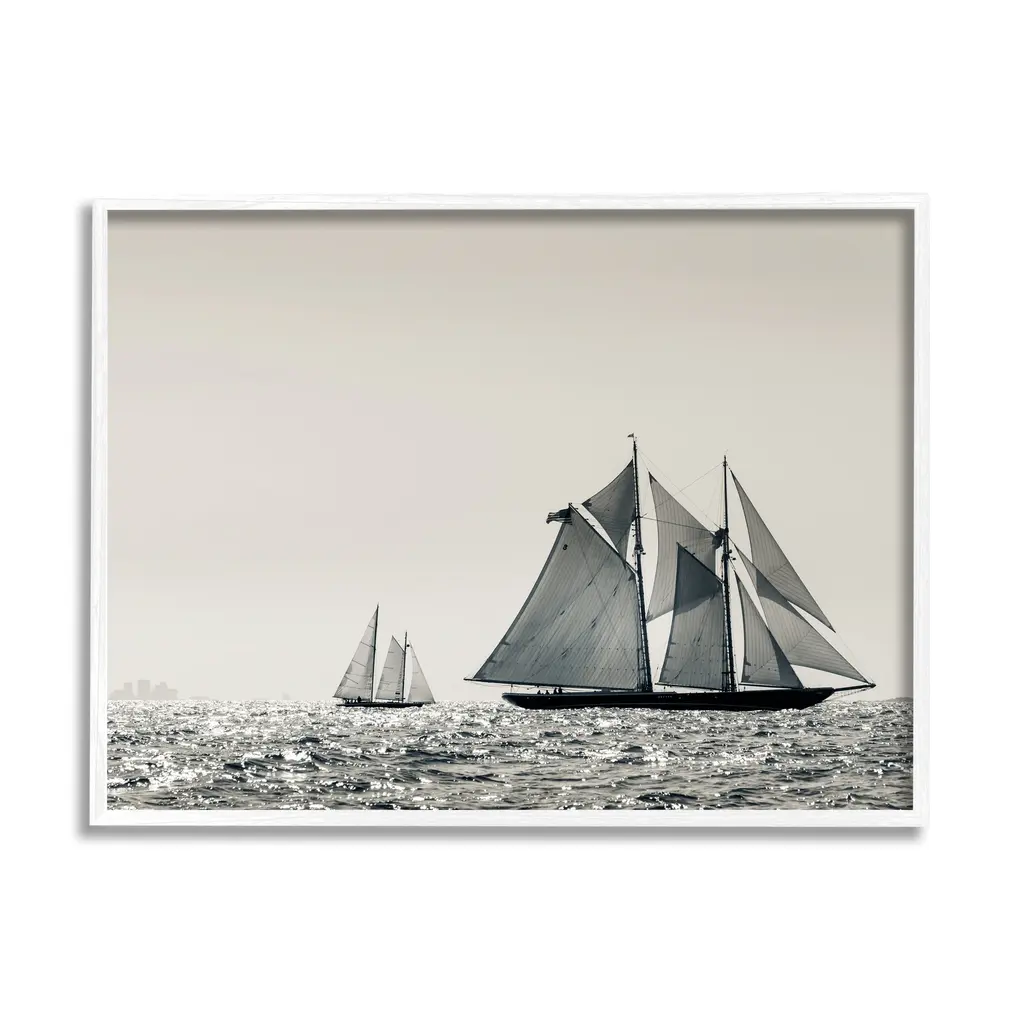 Stupell Grand Ocean Ships Nautical Sailing Scene Muted Photography Framed Wall Art - 20 X 16 - White