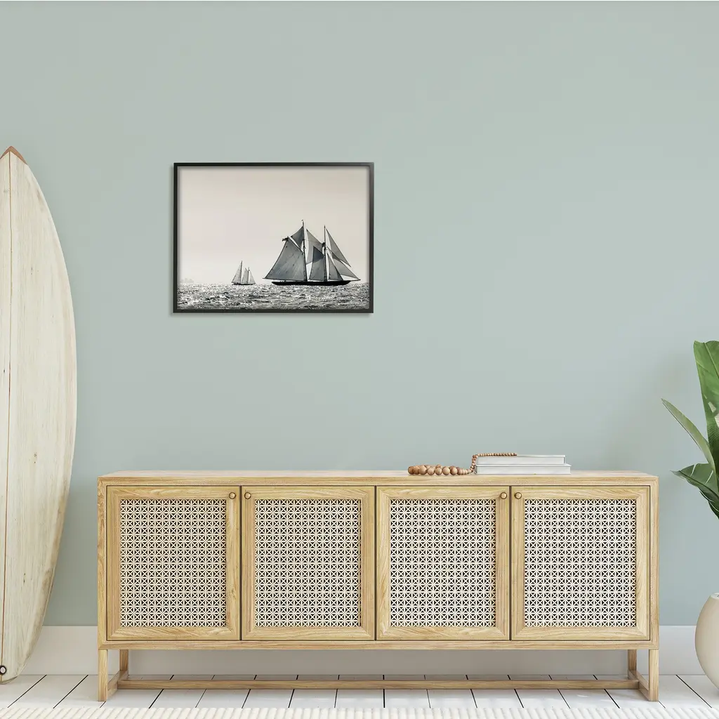 Stupell Grand Ocean Ships Nautical Sailing Scene Muted Photography Framed Wall Art - 30 X 24 - Black