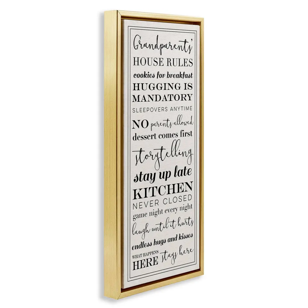 Stupell Grandparents House Rules Framed Floater Canvas Wall Art Design By Daphne Polselli - 11 X 25 - Gold