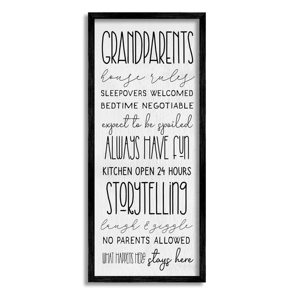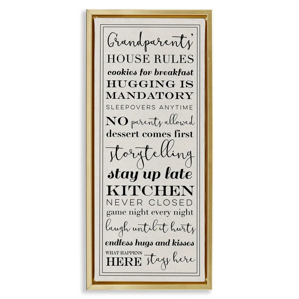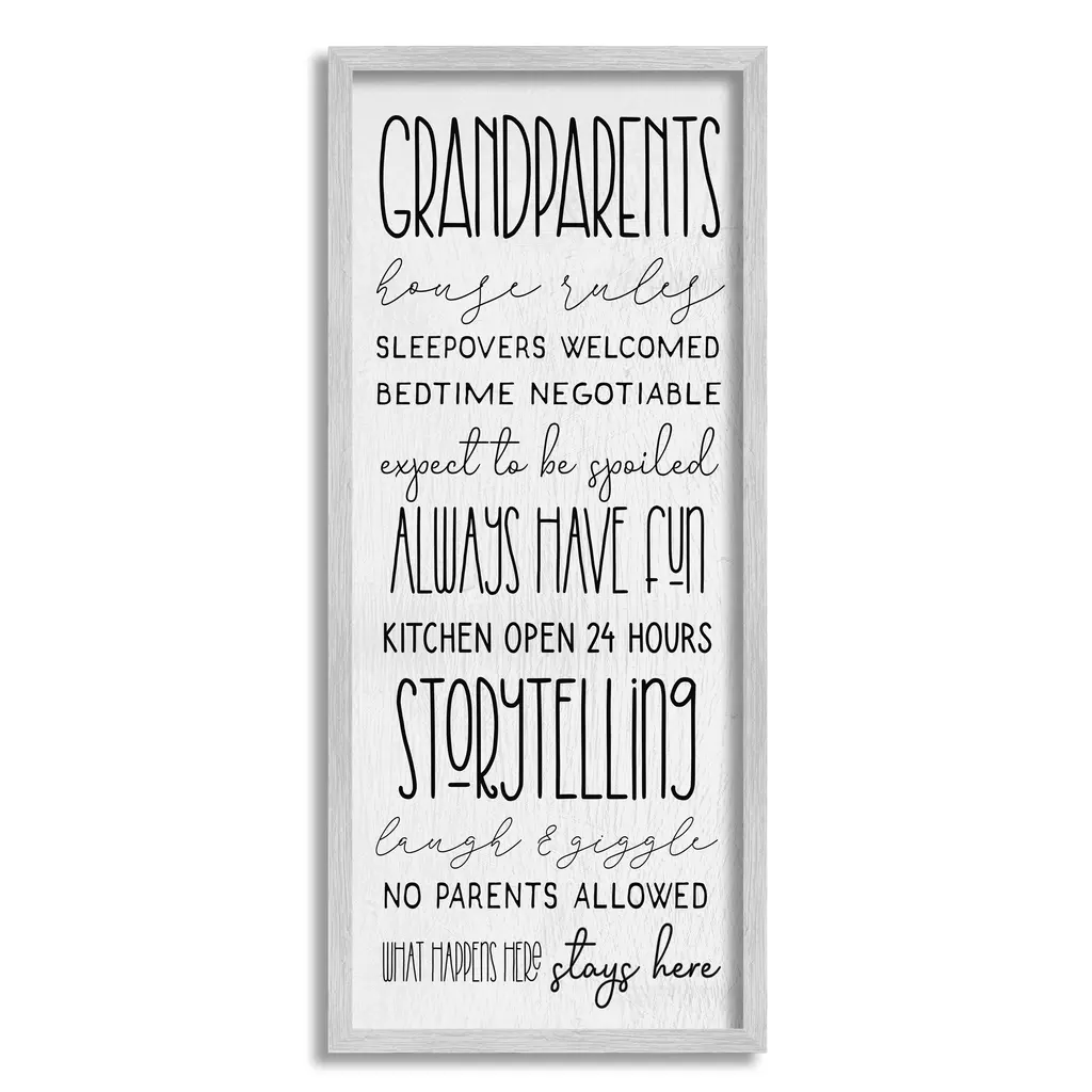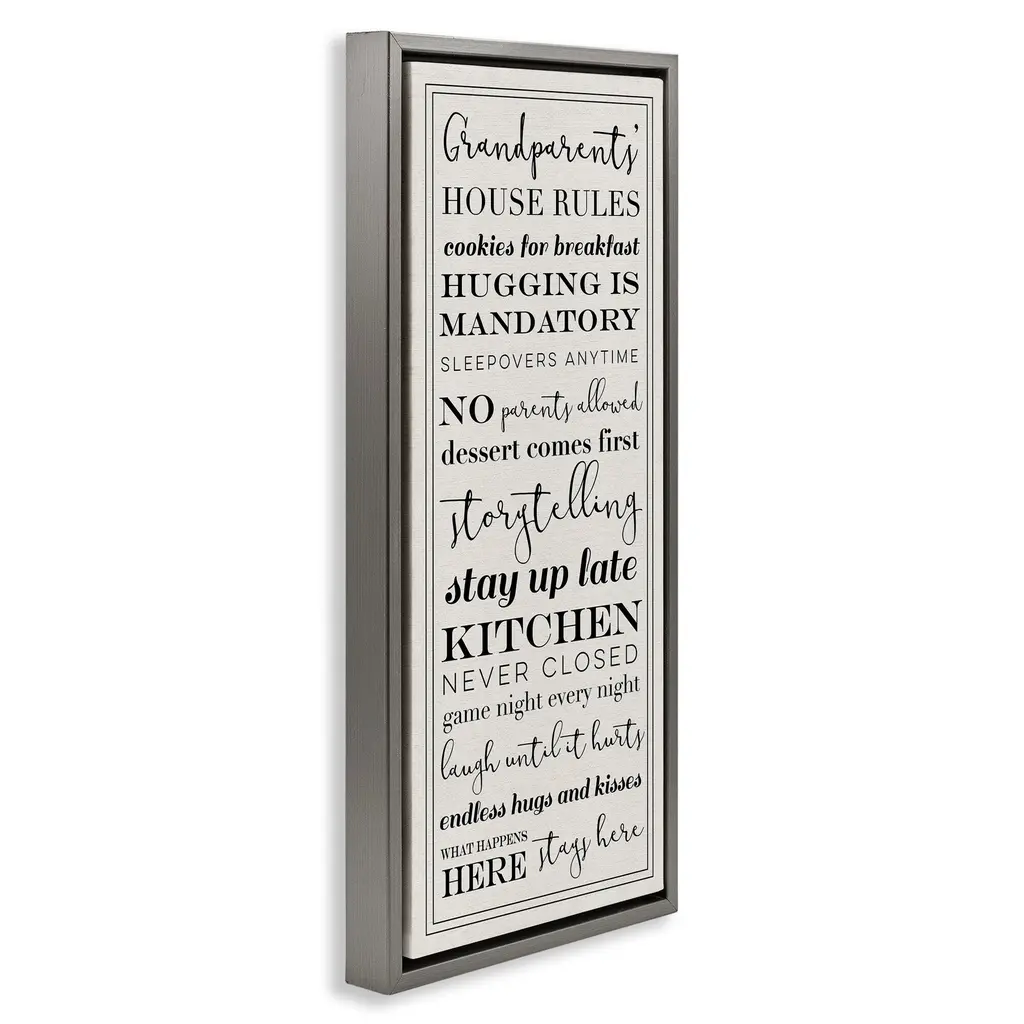 Stupell Grandparents House Rules Framed Floater Canvas Wall Art Design By Daphne Polselli - 11 X 25 - Grey
