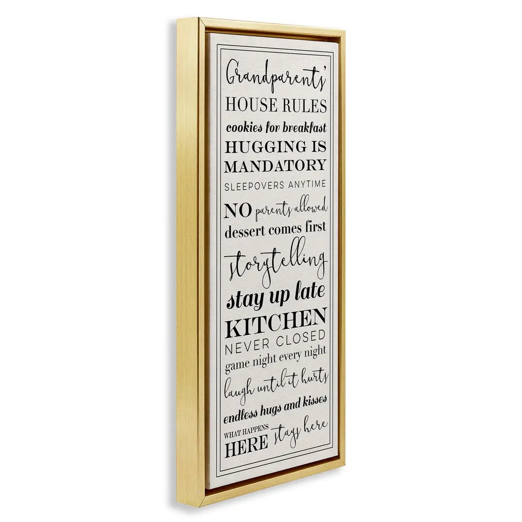 Stupell Grandparents House Rules Framed Floater Canvas Wall Art Design By Daphne Polselli - 14 X 31 - Gold
