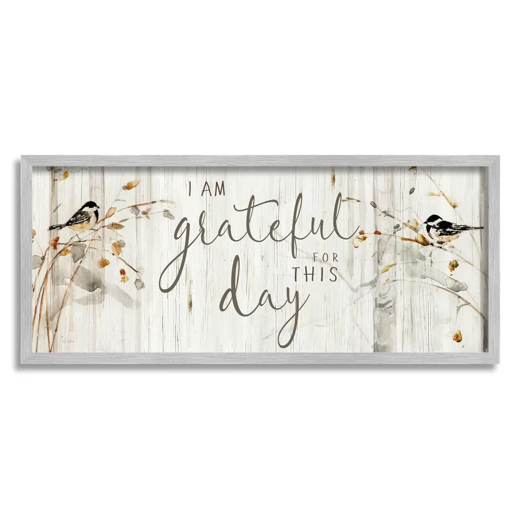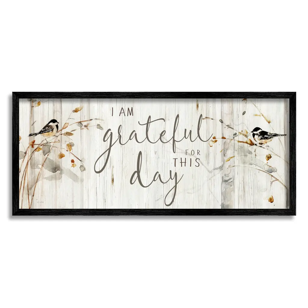Add dimension to any room with our textured Framed Giclee Artwork. Our framed artwork is securely mounted into a 1.5-inch thick wood grain frame and ready to hang. Frames are available in three alluring styles: black, gray farmhouse and white. In addition, you should check out our oversized options if you want a statement piece. Stupell Wall Art is made in the USA.Features: Dimensions: 24 x 1.5 x 10 FramedFramed Giclee Sizes Include Standard: 24 x 1.5 x 10 Oversized: 30 x 1.5 x 13Wall Art is Ready to Hang - No Installation or Hardware Needed. For Easy Set Up Lean or Layer Artwork on Shelf or Against Wall.Our giclée prints are carefully mounted on a durable MDF backing, and then perfectly finished in a 1.5 inch thick woodgrain frame. Mounted frame colors include black, gray farmhouse and white. Made In USA.Artwork Relates To: Bird, Botanical, Rustic, Phrase, I Am Grateful For This DayDesign by Sally Swatland