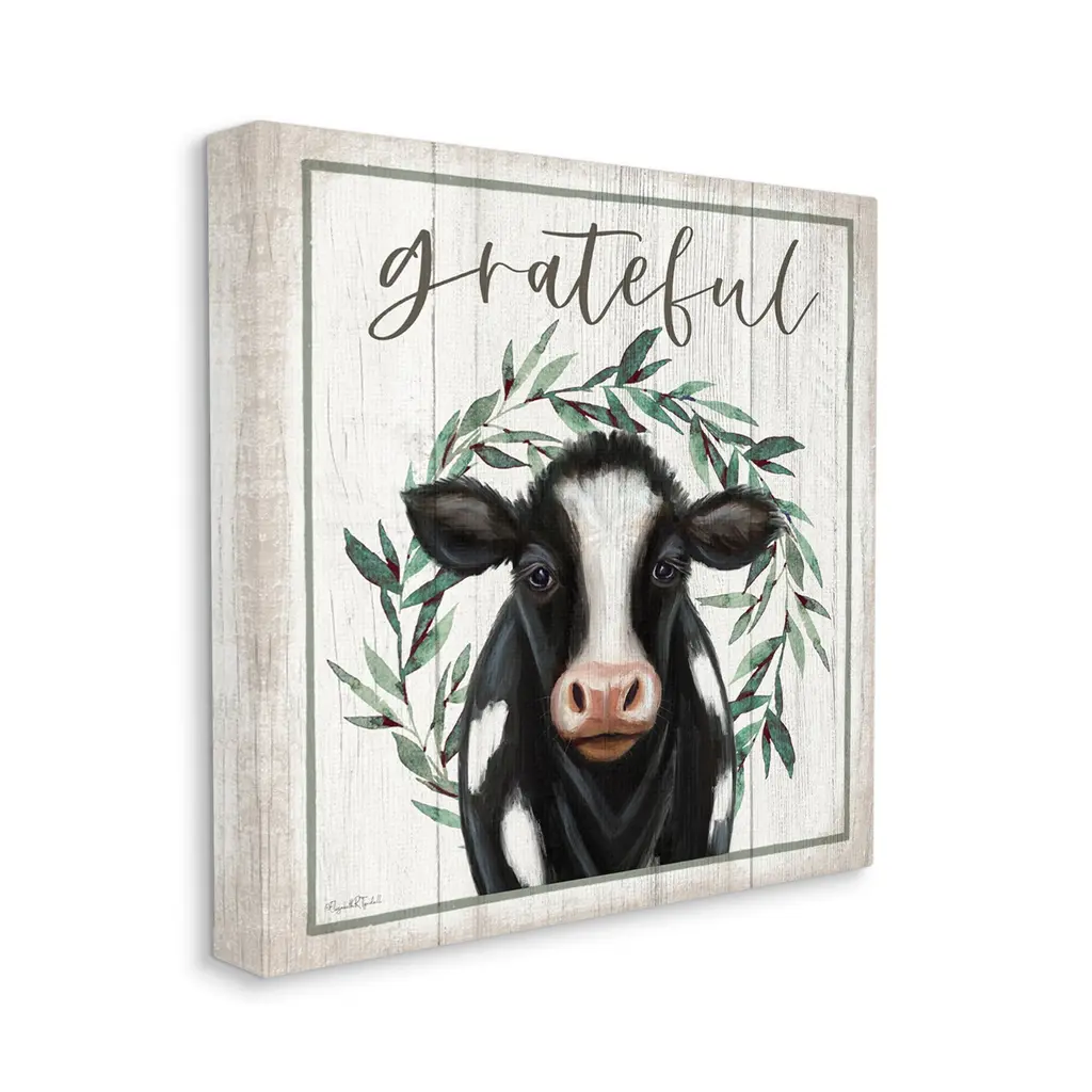 Stupell Grateful Phrase Cow Canvas Wall Art Design By Elizabeth Tyndall - 30 X 30