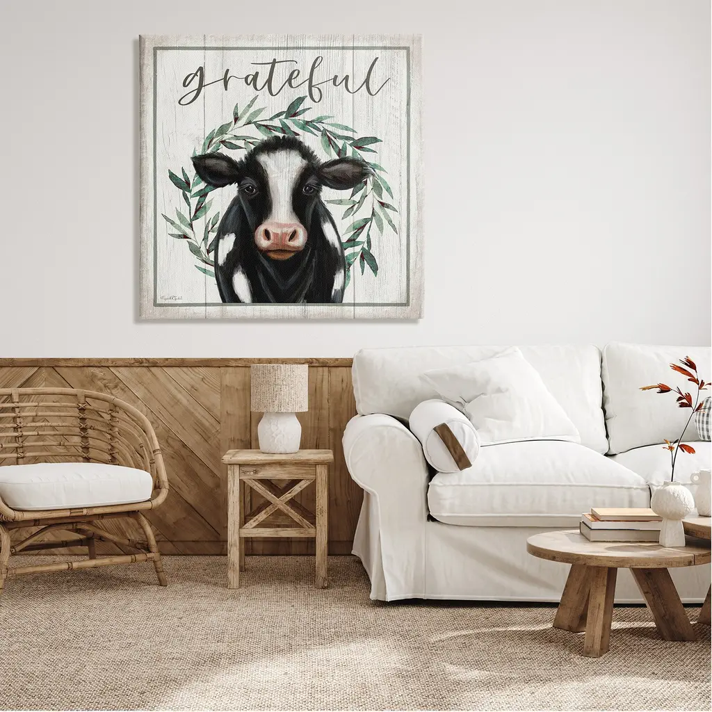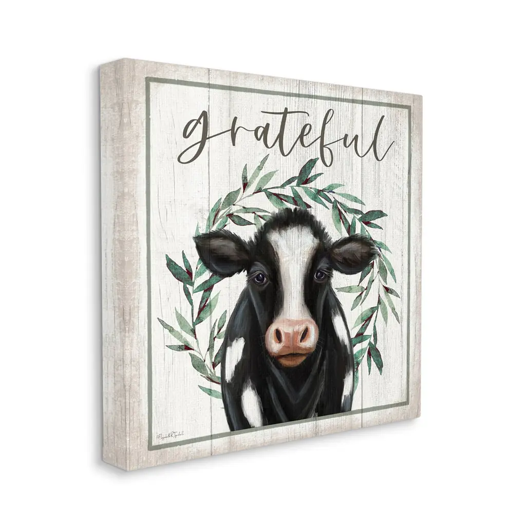 Stupell Grateful Phrase Cow Canvas Wall Art Design By Elizabeth Tyndall - 36 X 36
