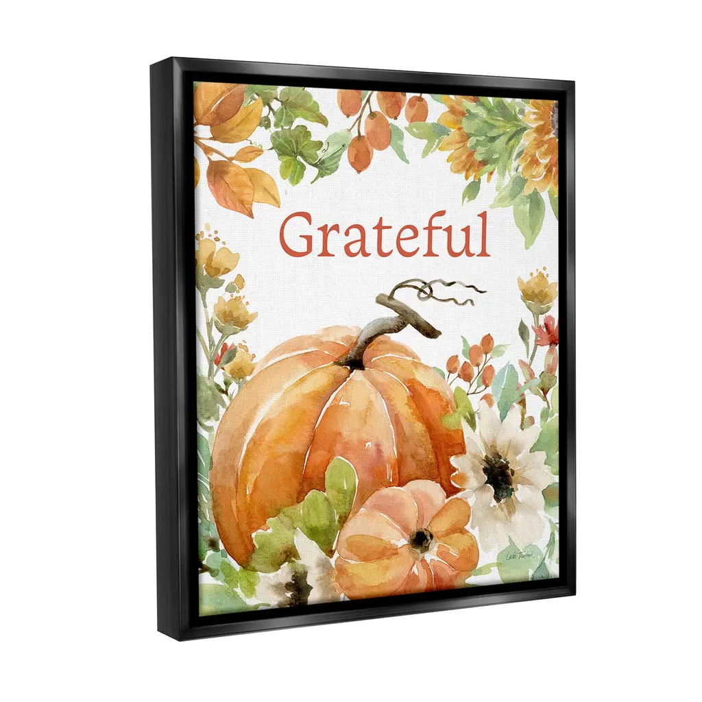 Stupell Grateful Pumpkins & Flowers Framed Floater Canvas Wall Art Design By Leslie Trimbach - 17 X 21 - Black