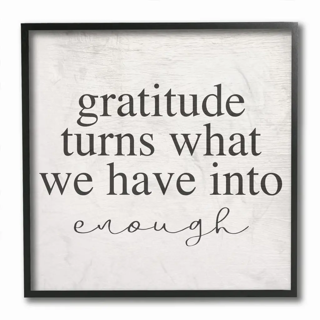 Stupell Gratitude Into Enough Inspirational Family Home Word Design, 12x12, Framed Wall Art - 12 X 12 - 12 X 12 - Wood - Black