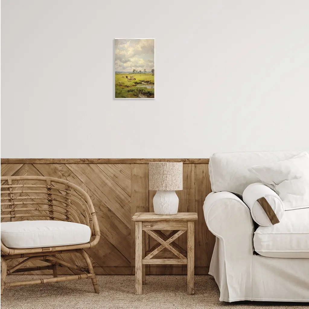 Our wall plaques start as high-quality lithograph prints mounted on durable 0.5-inch thick MDF wood. Each piece is hand finished and comes with a fresh layer of white foil on the sides to give it a crisp, clean look. Plaques arrive ready to hang without installation and come with removable plastic corners to keep them from damage in transit. Stupell Wall Art is made in the USA.Features: Dimensions: 10 x 0.5 x 15 InchesWall Plaque Product Sizes Include 10"x15" and 13"x19". All wall plaque products have a 0.5" Depth. Wall Art is Ready to Hang with Hardware Free Hanging. No installation required. For Easy Set Up Lean or Layer Artwork on Shelf or Against Wall.All of our wall plaques start off as high quality lithograph prints that are then mounted on durable 0.5 inch thick MDF wood. Each piece is hand finished and comes with a fresh layer of foil on the sides to give it a crisp clean look. Made In USA.Artwork Relates To: Field, Grassland, Nature, Countryside, Farm, Pasture, Rural, Grazing, Animal, Cattle, Cow, Mammal, LandscapeDesign by Petal Prints Design
