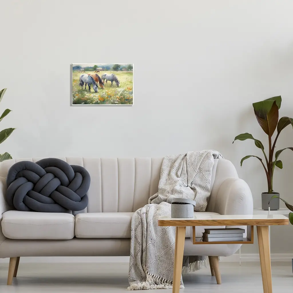 Our wall plaques start as high-quality lithograph prints mounted on durable 0.5-inch thick MDF wood. Each piece is hand finished and comes with a fresh layer of white foil on the sides to give it a crisp, clean look. Plaques arrive ready to hang without installation and come with removable plastic corners to keep them from damage in transit. Wall Art is made in the USA.Features: Dimensions: 15 x 0.5 x 10 InchesWall Plaque Sizes Include Standard: 15 x 0.5 x 10 Oversized: 19 x 0.5 x 13Wall Art is Ready to Hang with Hardware Free Hanging. No installation required. For Easy Set Up Lean or Layer Artwork on Shelf or Against Wall.All of our wall plaques start off as high quality lithograph prints that are then mounted on durable 0.5 inch thick MDF wood. Each piece is hand finished and comes with a fresh layer of foil on the sides to give it a crisp clean look. Made In USA.Artwork Relates To: Field, Grassland, Nature, Animal, Horse, Mammal, Countryside, Colt Horse, Farm, Pasture, Rural, Grazing, Foal, Meadow, PaintingDesign by Ramona Murdock