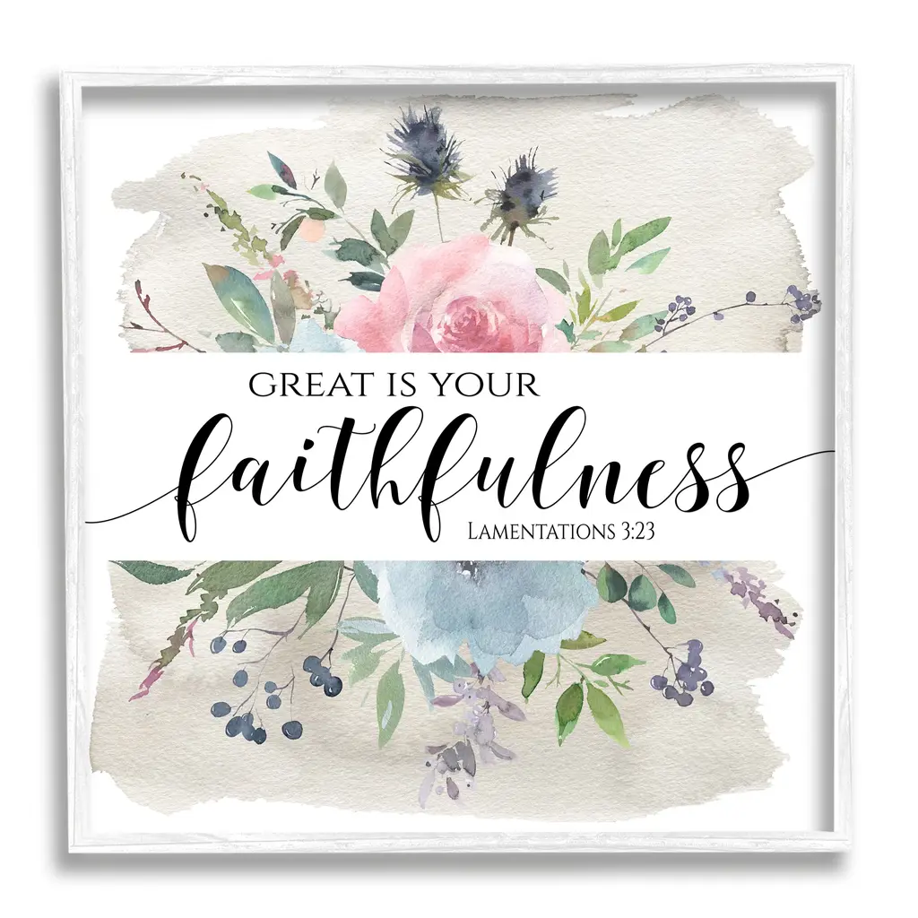 Stupell Great Is Your Faithfulness Lamentations 3:23 Wild Florals Framed Wall Art - Multi-Color - 24 X 24 - Black