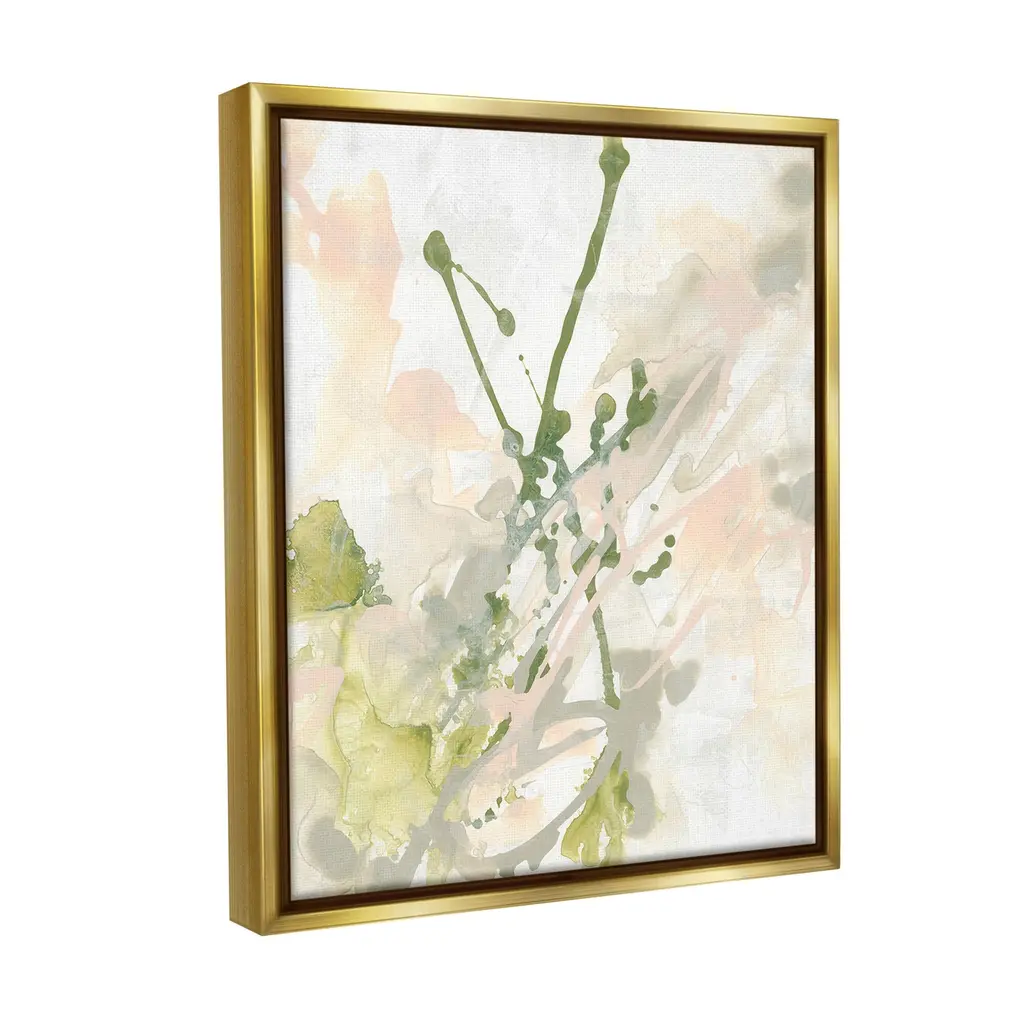 Stupell Green Abstract Splatter Framed Floater Canvas Wall Art Design By June Erica Vess - 17 X 21 - Gold