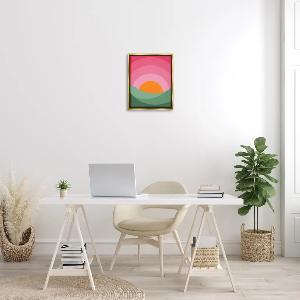 Stupell Green & Pink Landscape Framed Floater Canvas Wall Art Design By Carrie Cantwell - 17 X 21 - Gold